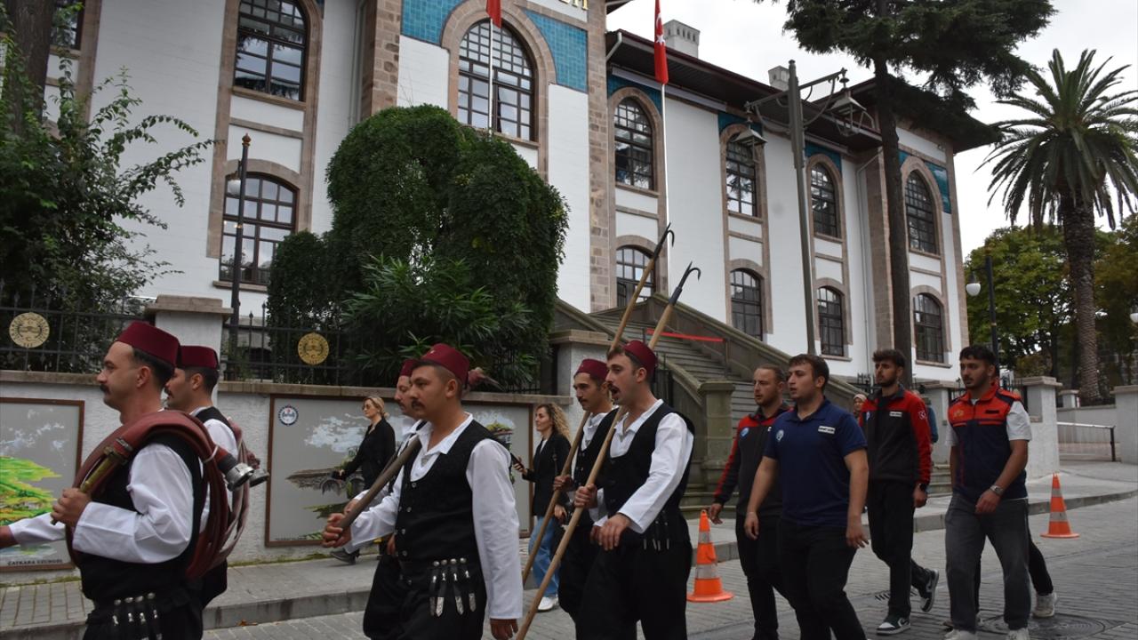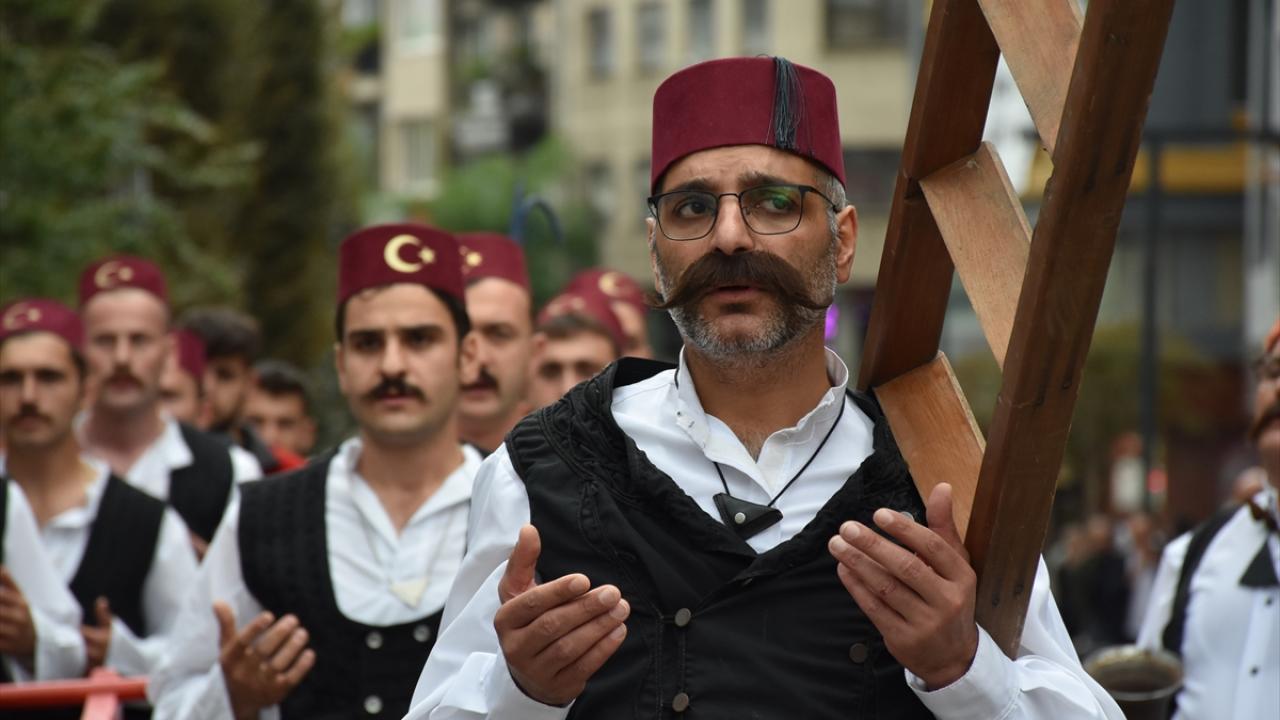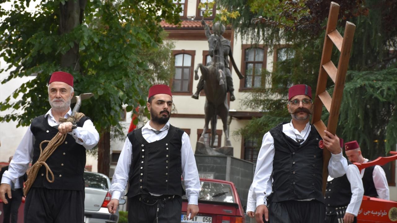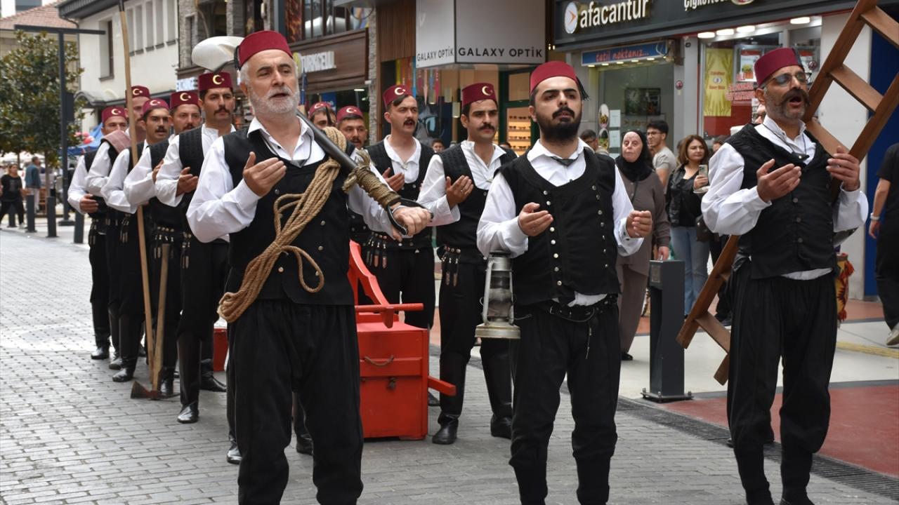 Yürüyüşte yer alan ve tulumbacı kıyafeti giymiş amatör tiyatro oyuncularına, vatandaş ve turistler ilgi gösterdi.