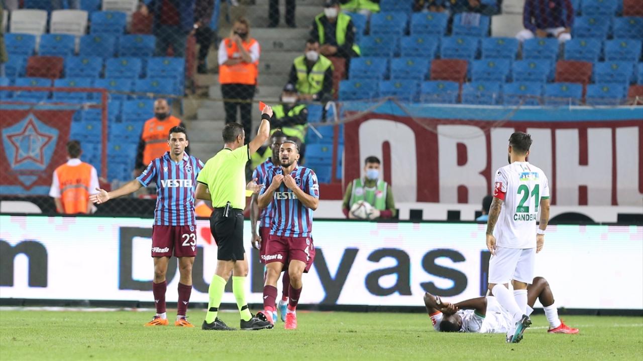 Ev sahibi Trabzonspor`da Hüseyin Türkmen 75. dakikada ikinci sarı kartını gördü ve maçın kalan kısmında takımını bir kişi eksik bıraktı.