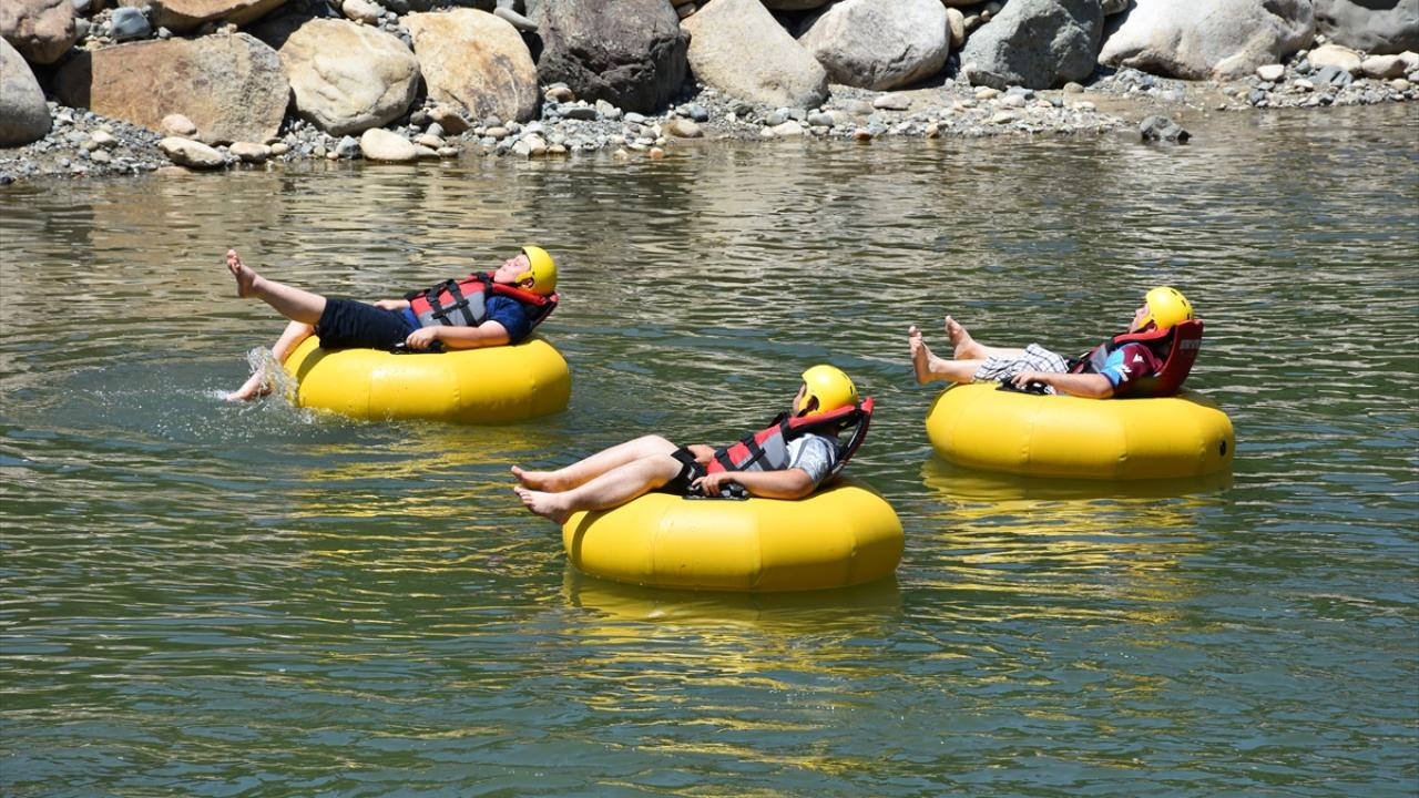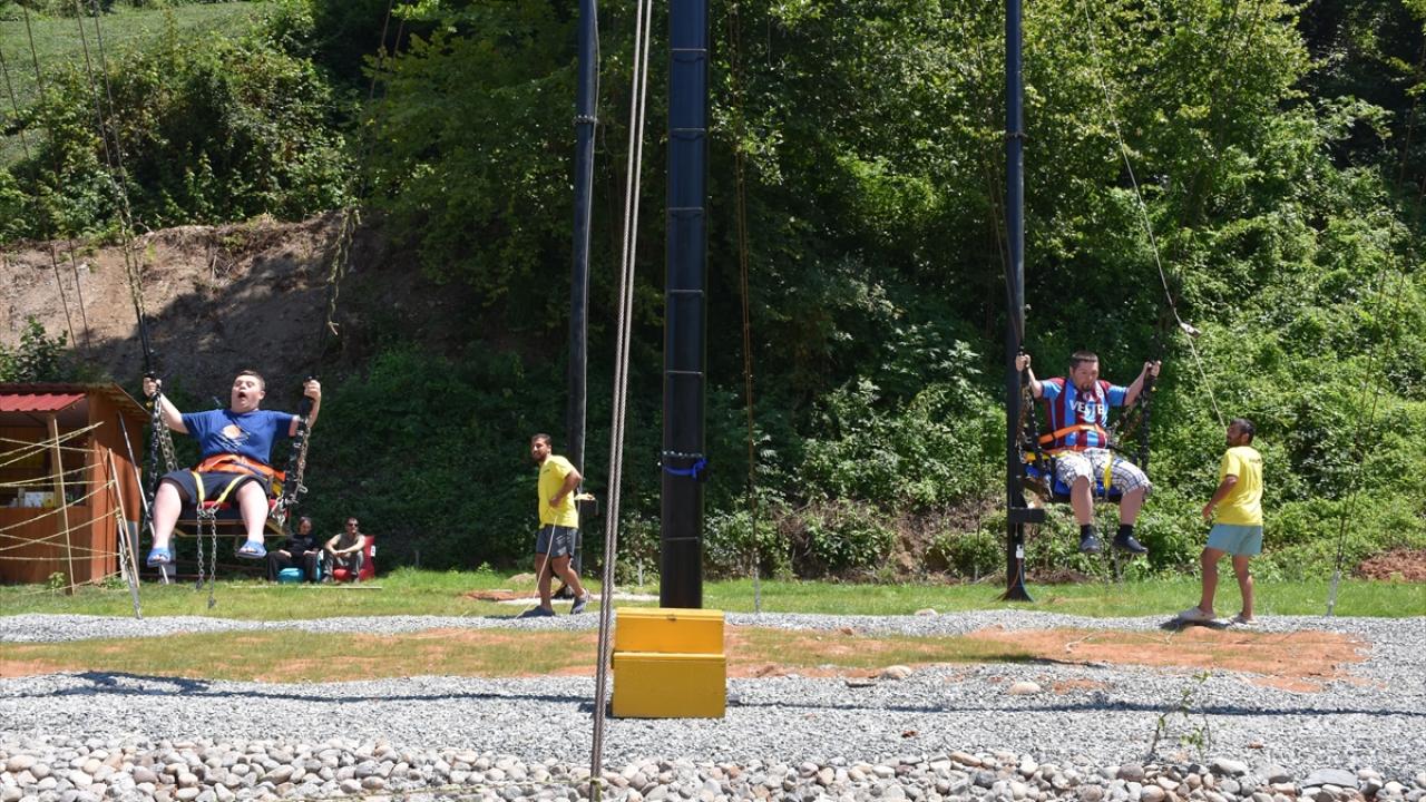 Görevlilerin gözetiminde parkur çevresinde zaman geçiren özel bireyler, daha sonra deredeki tek kişilik "rafting tubing"lere binerek doyasıya eğlendi.