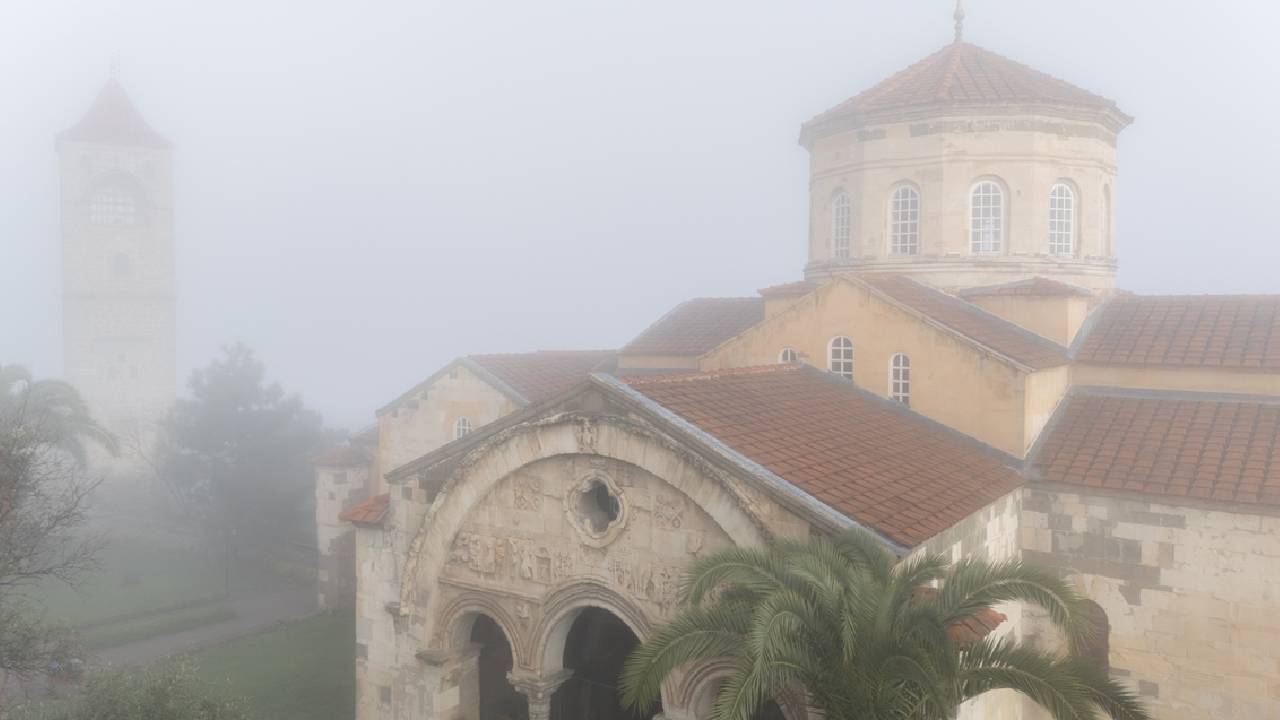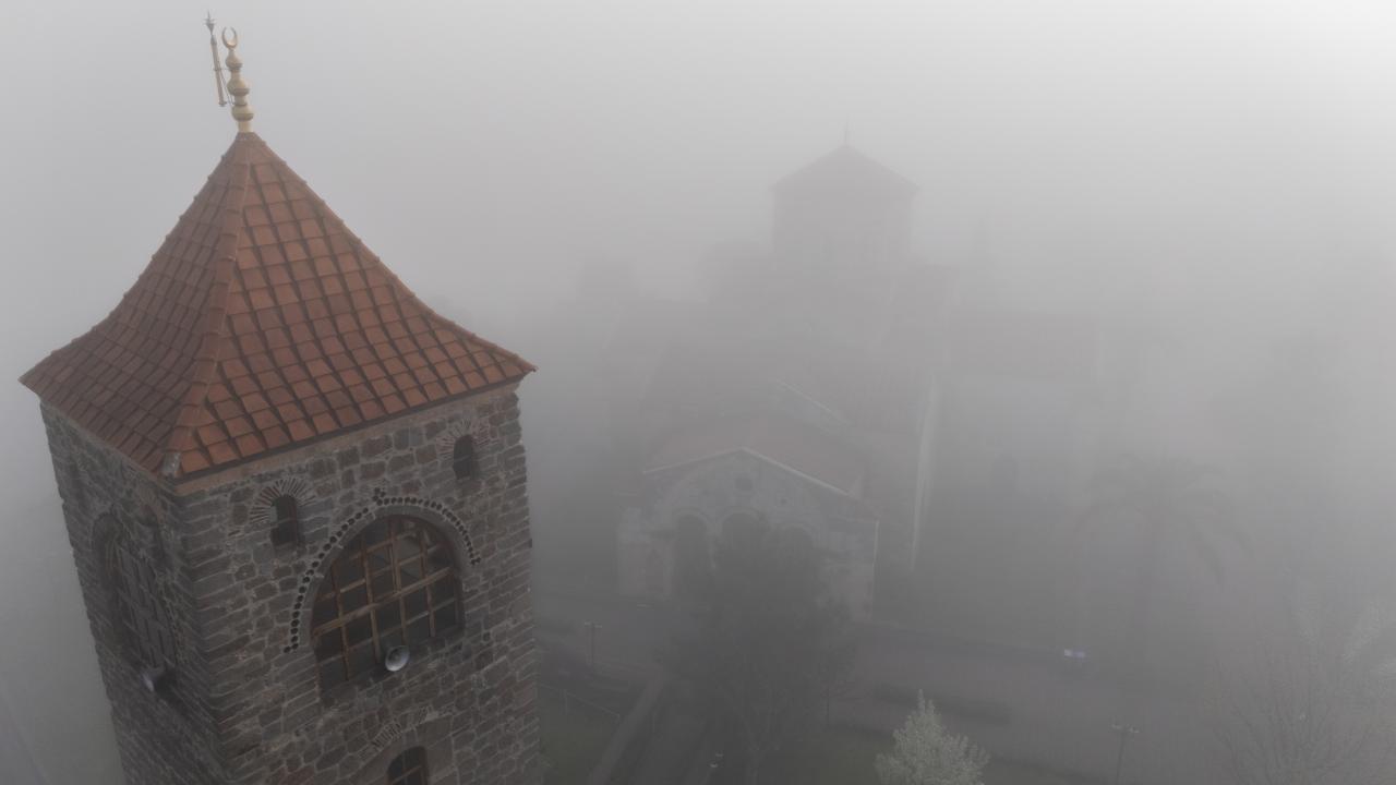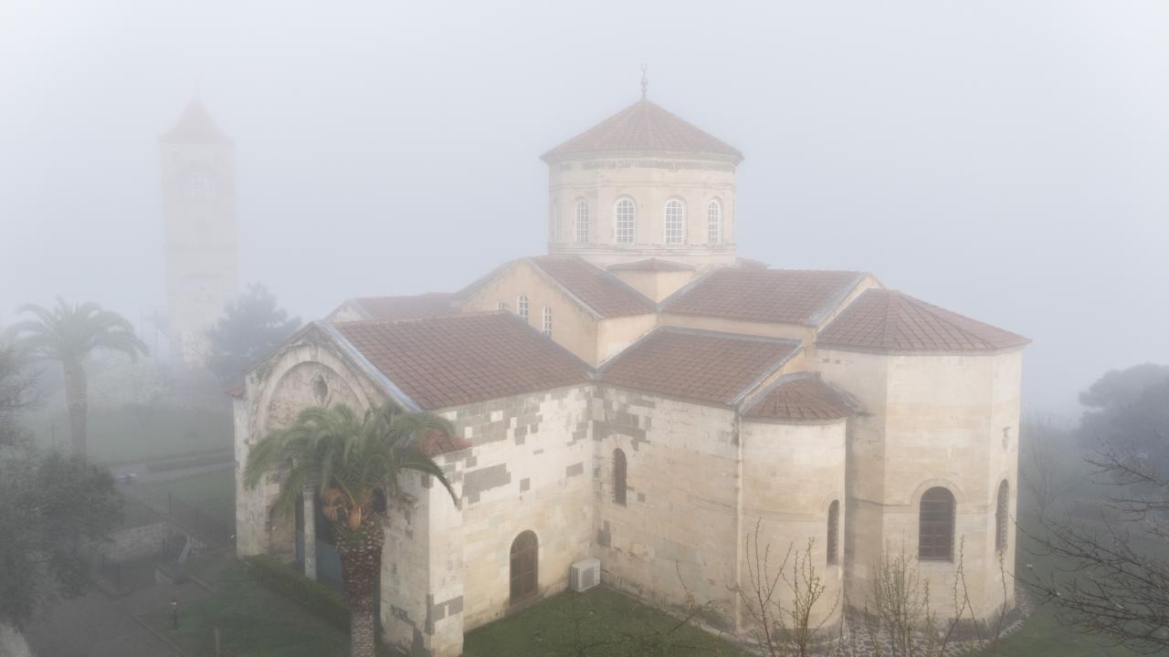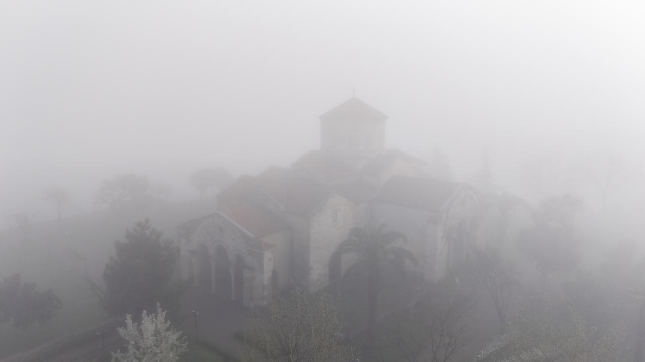 Trabzon'da sis, sabah saatlerinde tarihi Ayasofya Camisi ve çevresinde de etkili oldu.