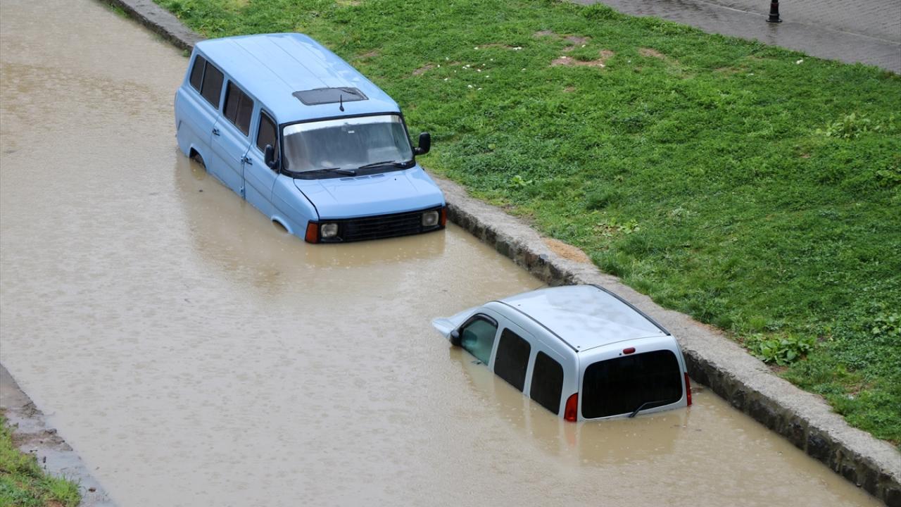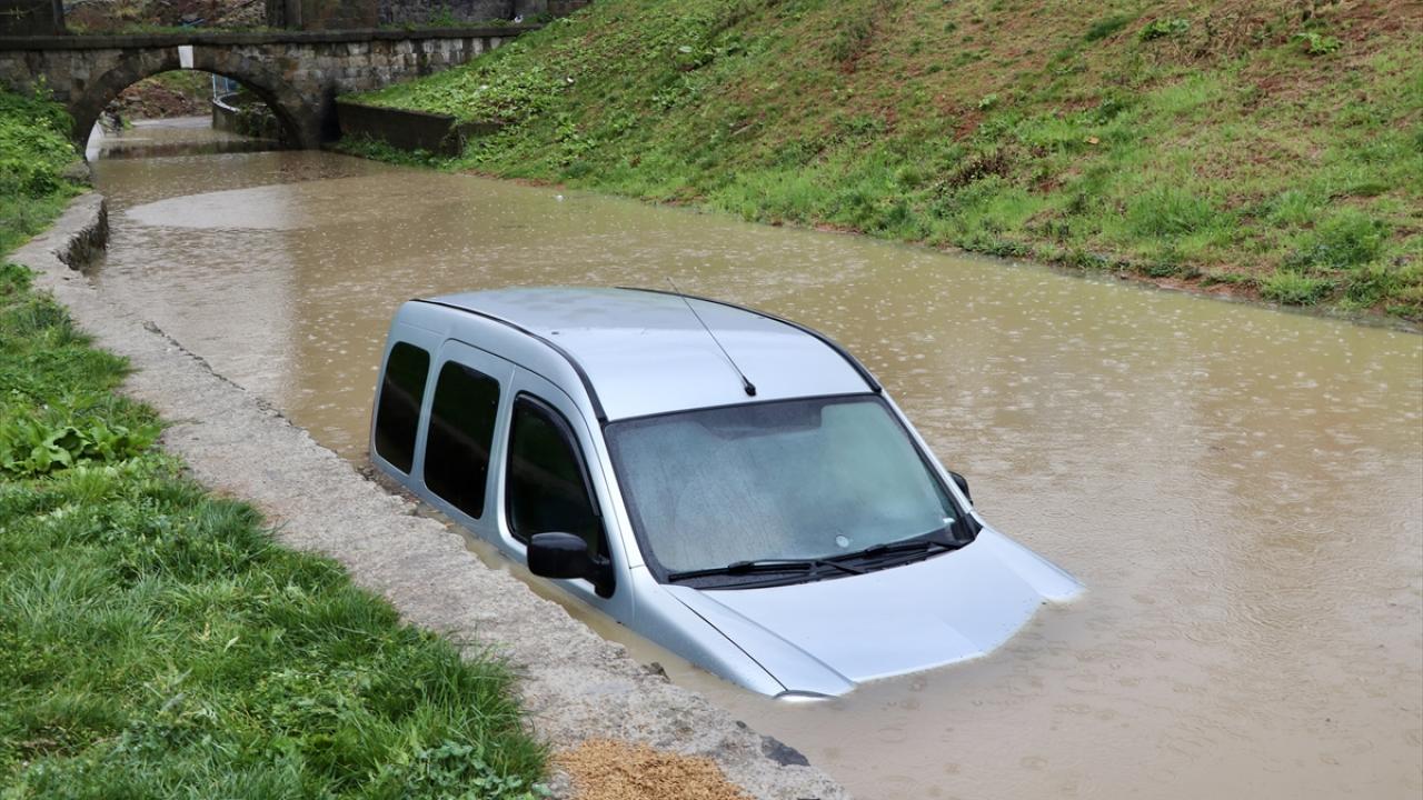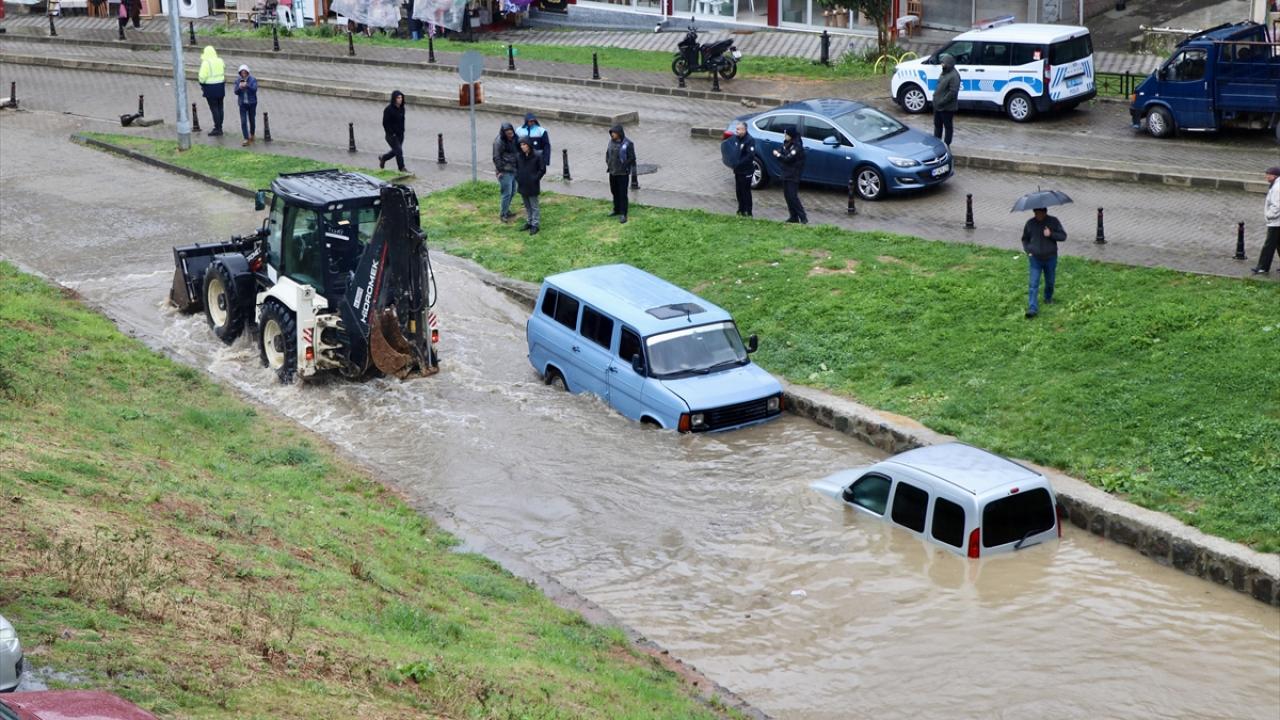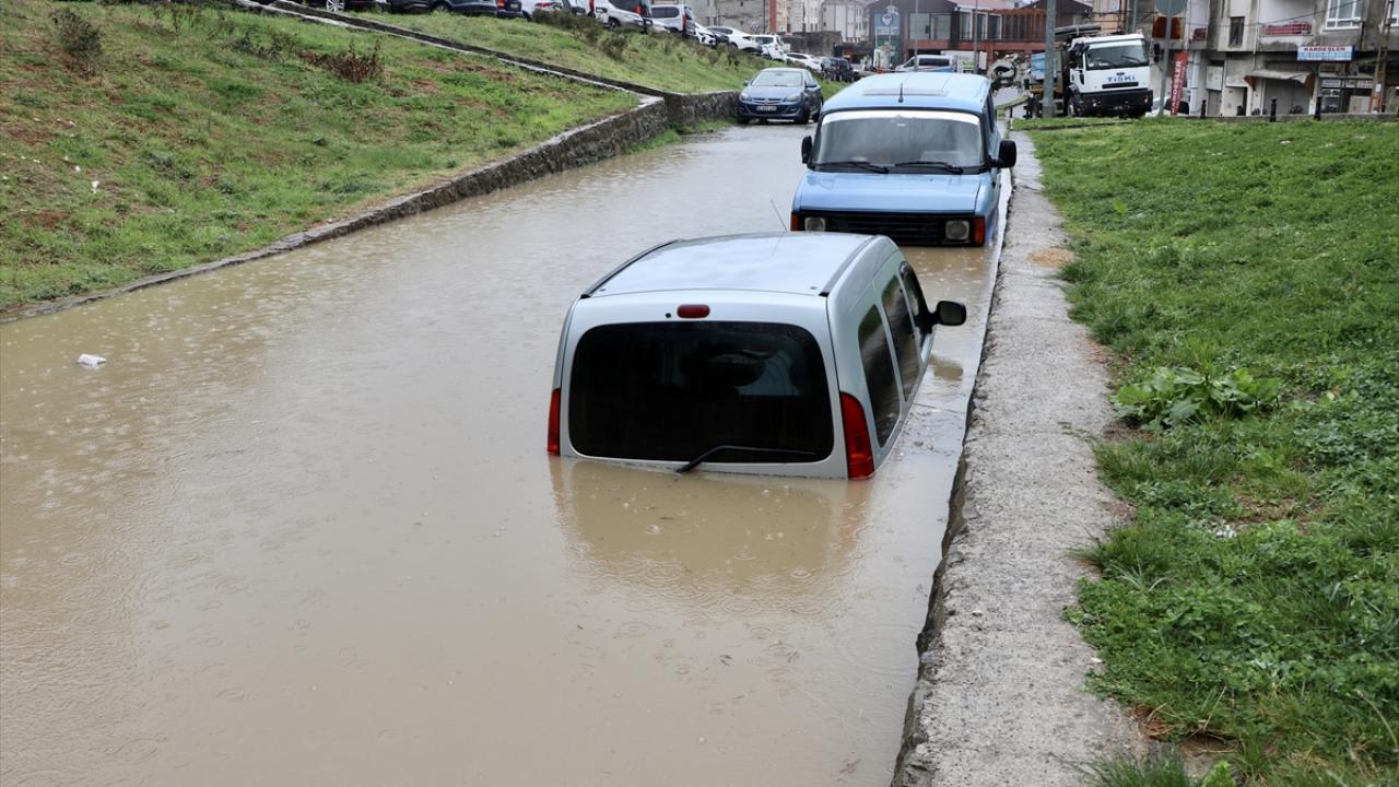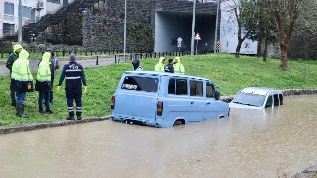 Ortahisar ilçesine bağlı Pazarkapı Mahallesi`nde park halindeki iki araç kısmen su altında kaldı.