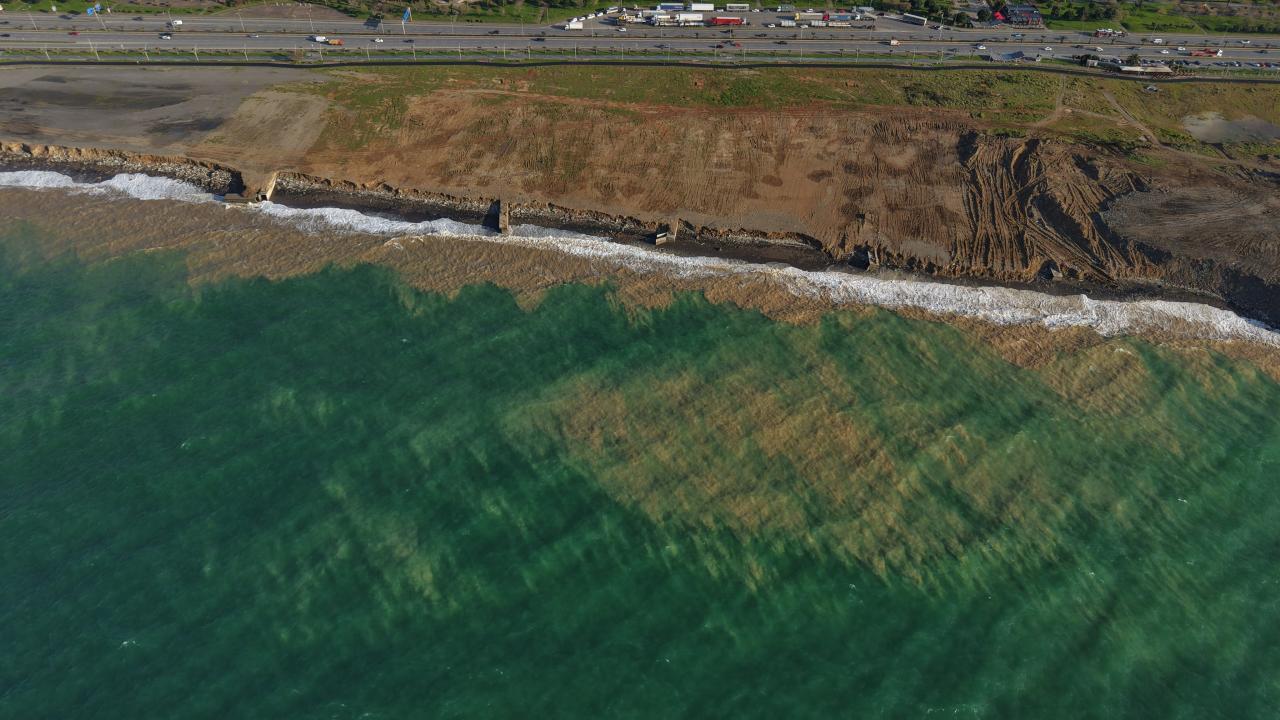 Dalgaların vurduğu dolgu sahasının toprağı denize karıştı, kıyılar çamur deryasına döndü.