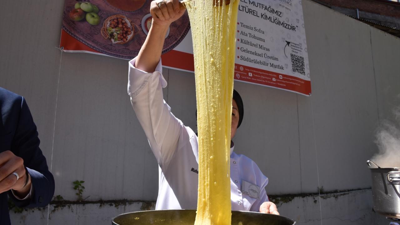 Trabzon'da, "Türk Mutfağı Haftası" etkinlikleri kapsamında coğrafi işaretli ürünlerle hazırlanan yemekler vatandaşlara ikram edildi.