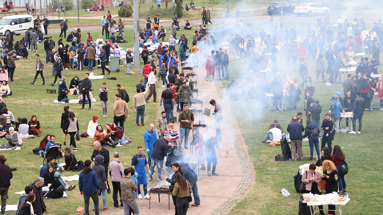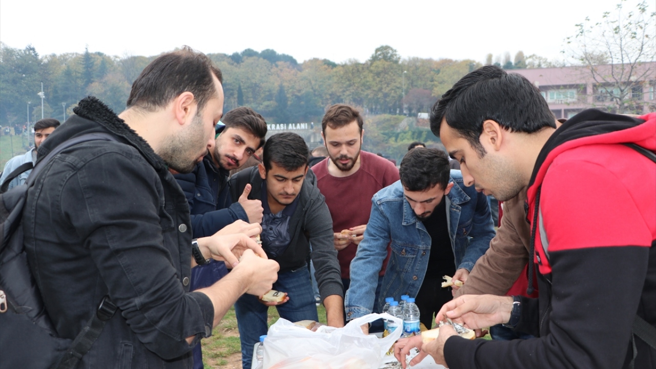 Trabzon'da, Karadeniz Teknik Üniversitesinin ev sahipliğinde Kanuni Kampüsü'ndeki 15 Temmuz Demokrasi Alanı'nda gerçekleştirilen Hamsi Şöleni'nde, 3 ton hamsi tüketildi.