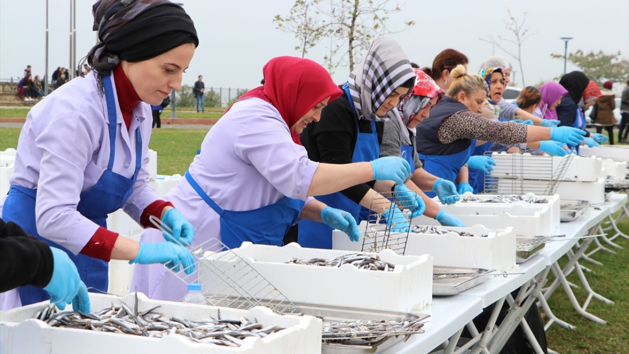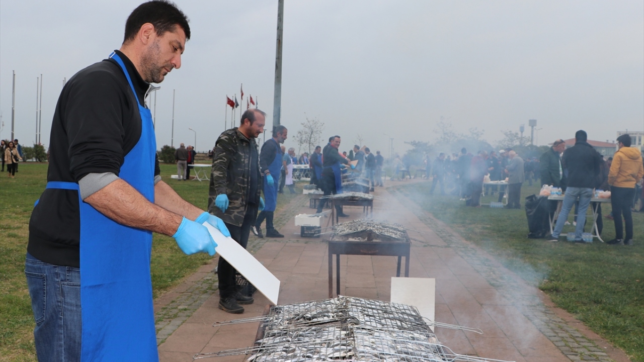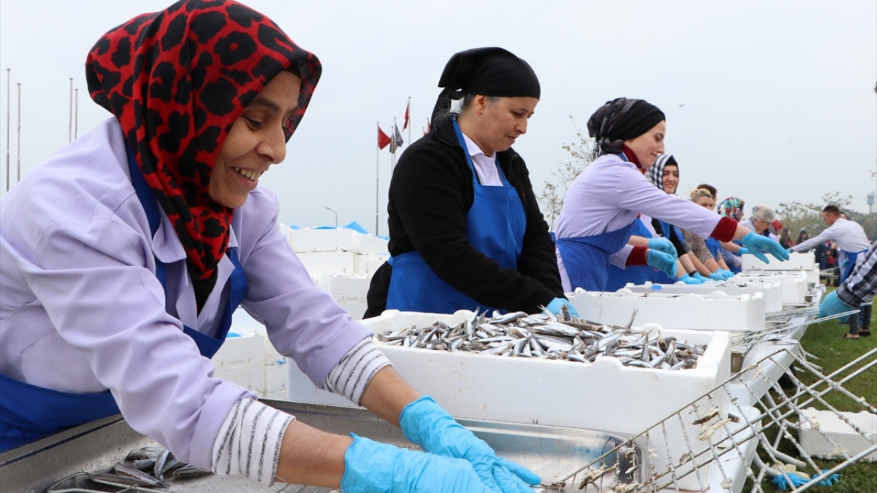 Yaklaşık 150 görevli tarafından hazırlanan 3 ton hamsi, ızgara yapılarak ekmek, soğan, helva ve mandalina ile ikram edildi.