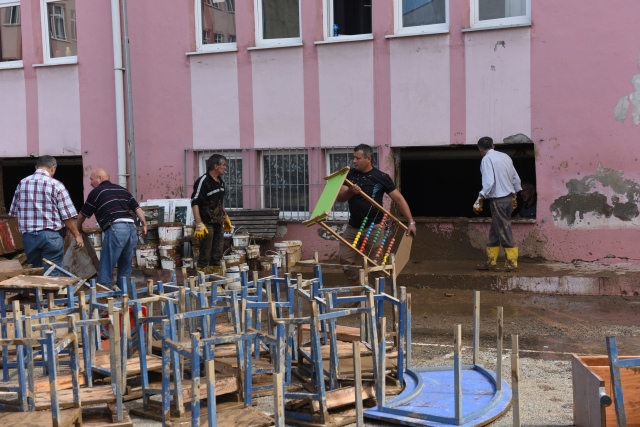 Trabzon'un Beşikdüzü ilçesinde 21 Eylül Çarşamba günü, sağanak sonucu meydana gelen sel nedeniyle okullarda ara verilen eğitim-öğretime yeniden başlandı.