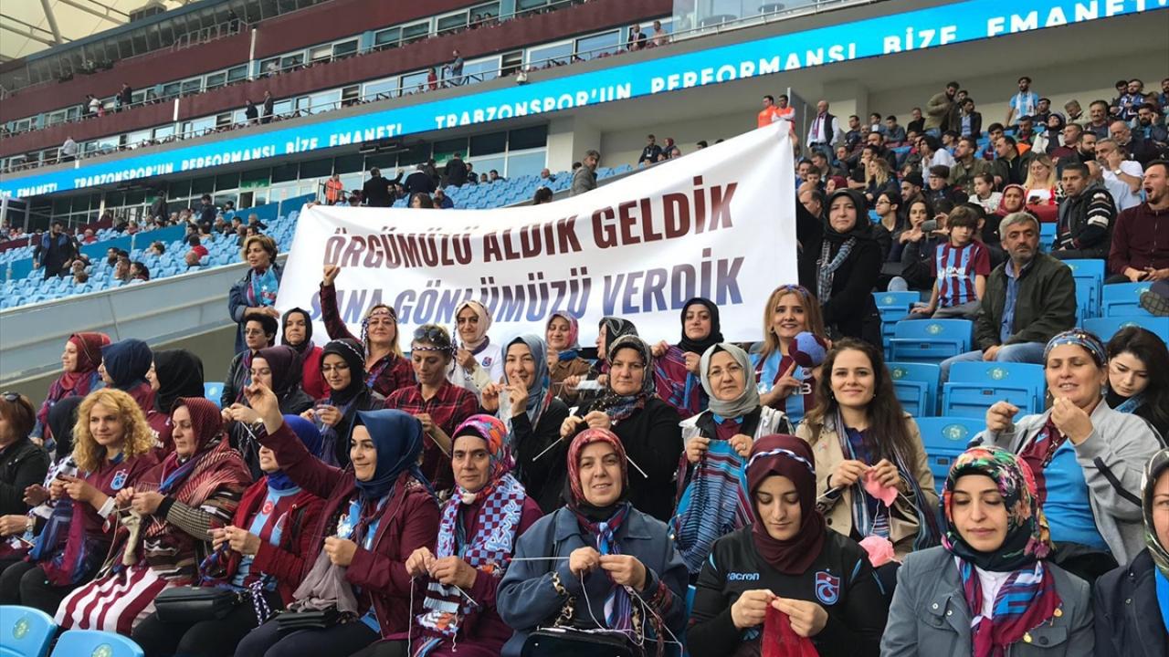 üper Lig’in 11. haftasında Trabzonspor ile Aytemiz Alanyaspor karşılaştı. AK Parti Trabzon Kadın Kolları tarafından hazırlanan "Örgümüzü Aldık Geldik, Sana Gönlümüzü Verdik" projesi kapsamında 40 kadın Trabzonspor-Aytemiz Alanyaspor maçını izledi. Kadınlar bir taraftan maçı izlerken bir taraftan da yöresel el sanatlarını tribünde işledi. Kadın taraftarlar ayrıca tribünde projenin isminin yer aldığı pankartı da açtı. (Arşiv)