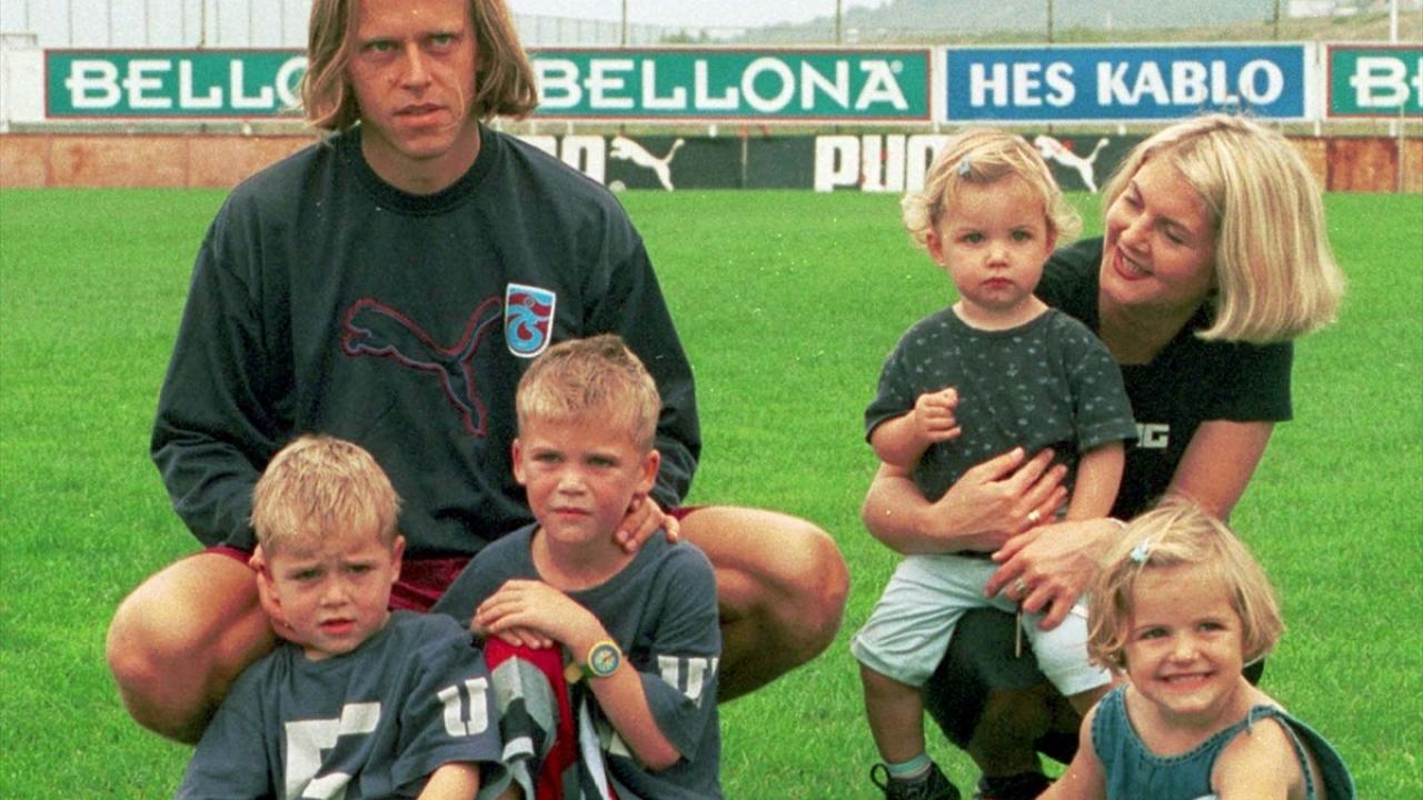 25 Eylül 2000`de Trabzospor`un transfer ettiği Loben`nin eşi Dıana ve dört çocuğu bordo-mavili takımın idmanında neşe kaynağı oldular. (Arşiv)