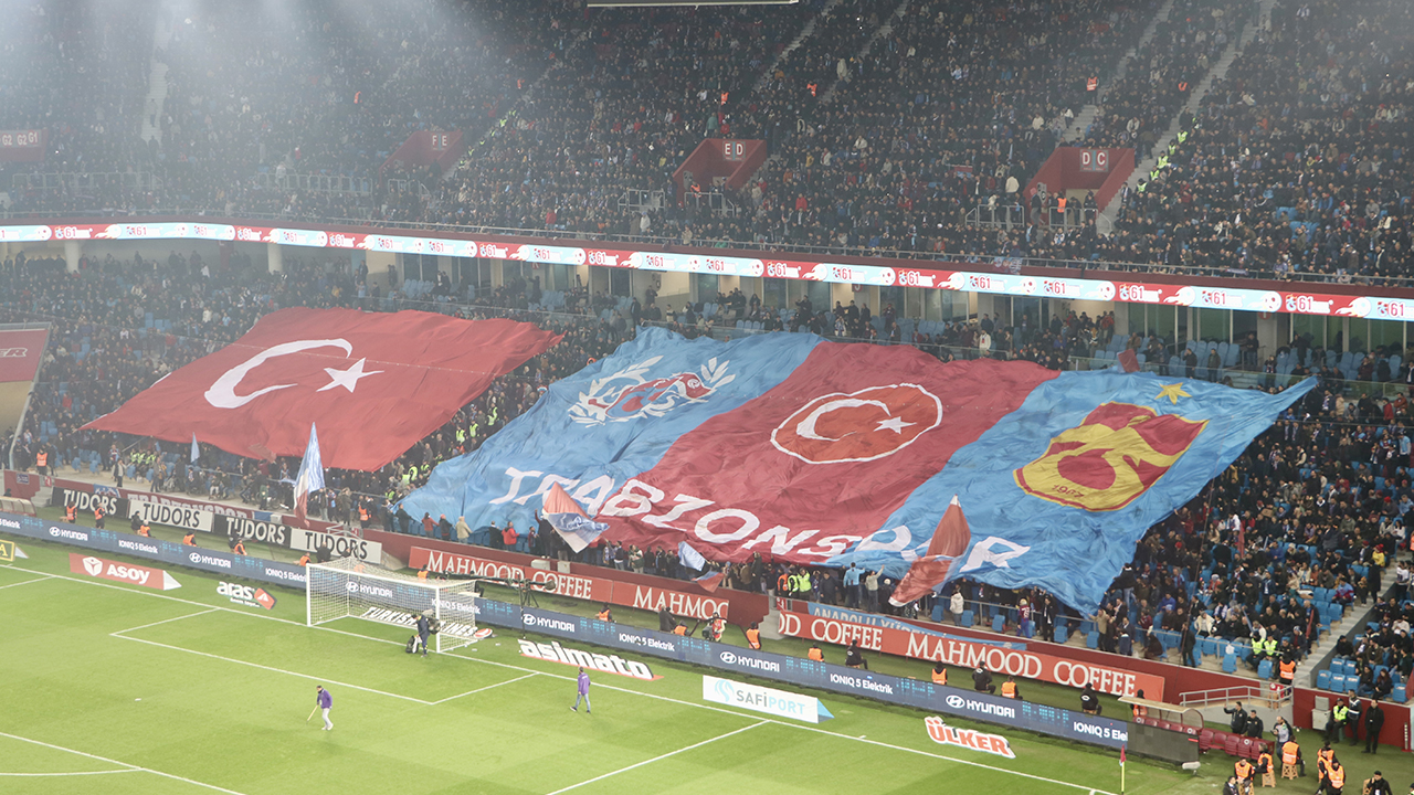 Trabzonsporlu taraftarlar koreografi gösterisi yaptı.