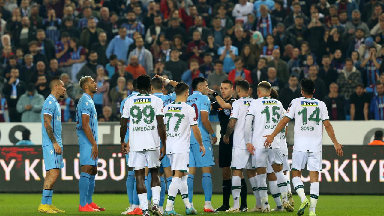 Trabzonspor`un 87. dakikada kazandığı penaltı, VAR incelemesi sonucu elle oynama gerekçesiyle iptal edildi.