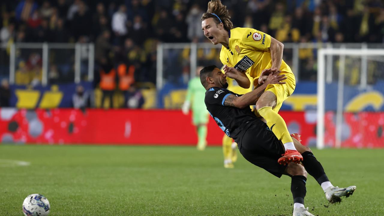 22. dakikada Trabzonspor öne geçti. Soldan gelişen konuk ekip atağında Markovic`in ara pasında penaltı noktasının önünde topla buluşan Abdülkadir Ömür, düzgün bir vuruşla meşin yuvarlağı filelere yolladı: 0-1.