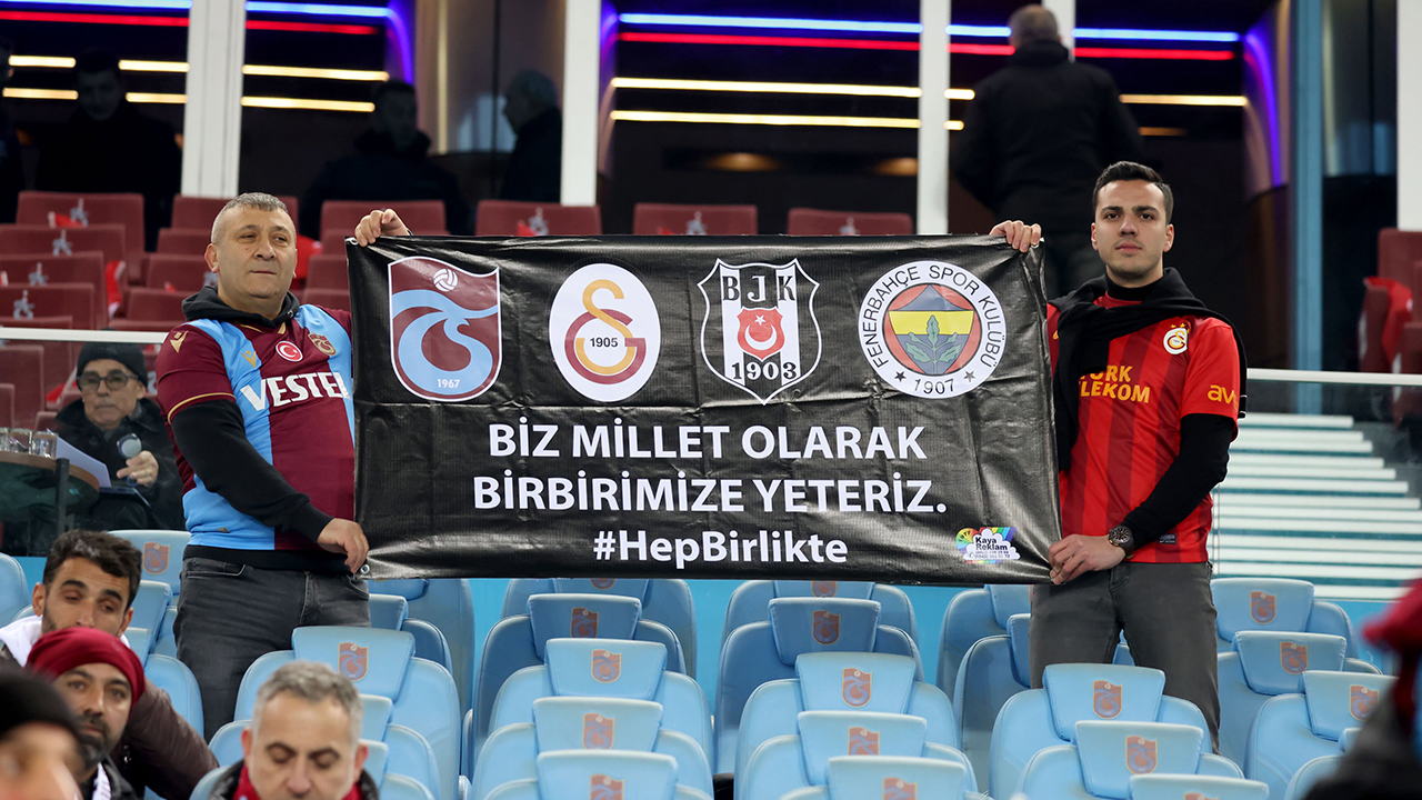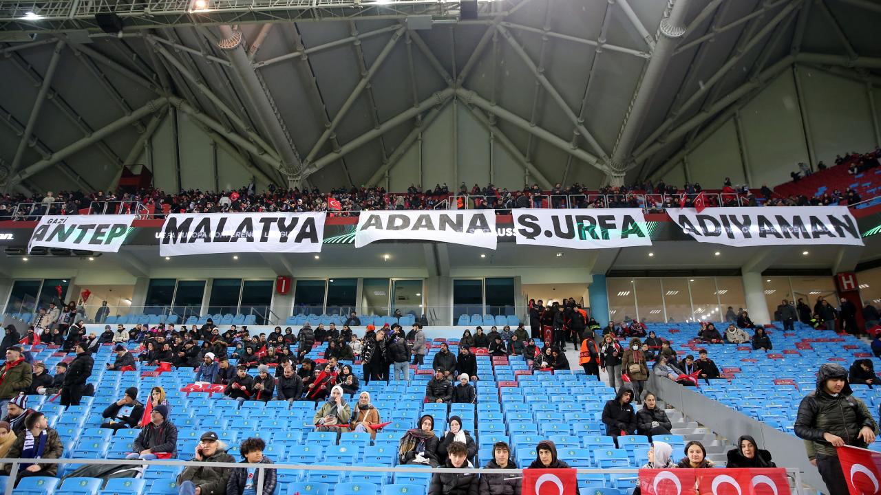 "Asrın felaketi" olarak nitelenen Kahramanmaraş merkezli depreminin ardından Türkiye`de ilk kez resmi bir karşılaşma oynanırken tüm futbol ailesi Şenol Güneş Spor Kompleksi`nde bir araya geldi.