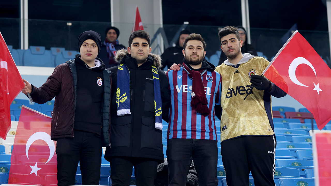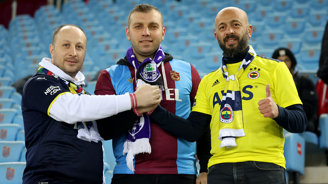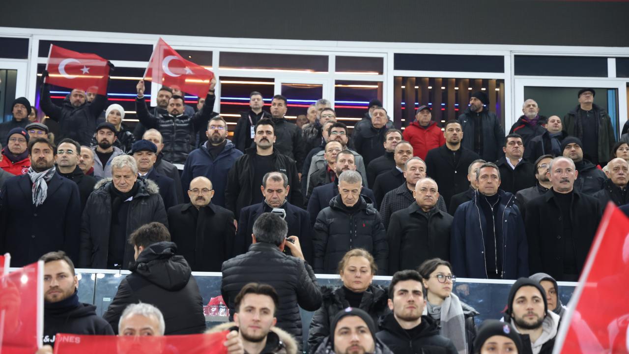 Türkiye Futbol Federasyonu Başkanı Mehmet Büyükekşi, Süper Lig kulüpleri başkanları protokol tribünde maçı birlikte izlerken farklı takım taraftarları da kendilerine ait forma ve bayraklarla tribünleri doldurdu.