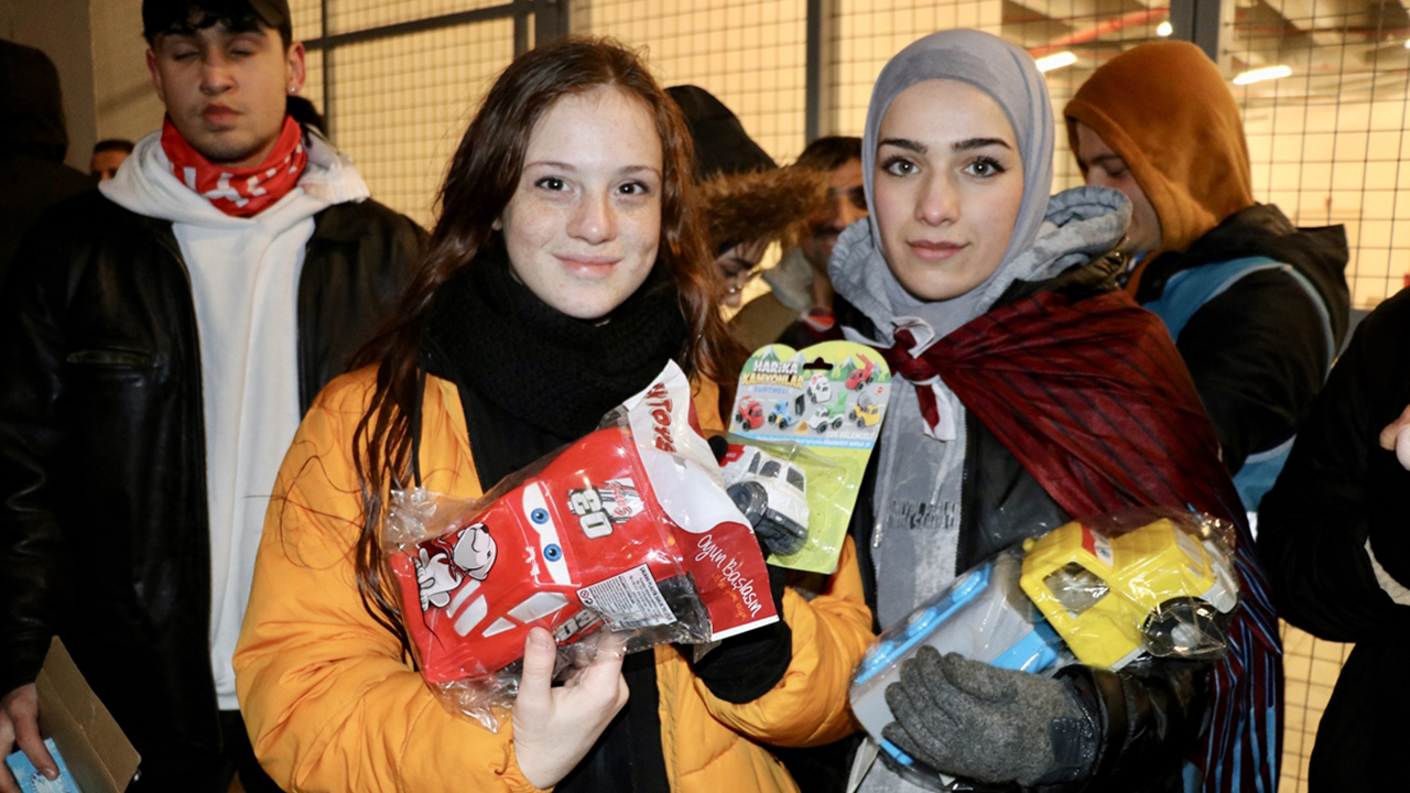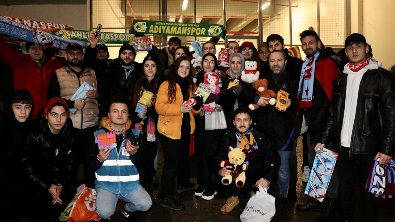 Trabzonspor taraftarları karşılaşma öncesinde depremzede çocuklar için oyuncak organizasyonu düzenledi.