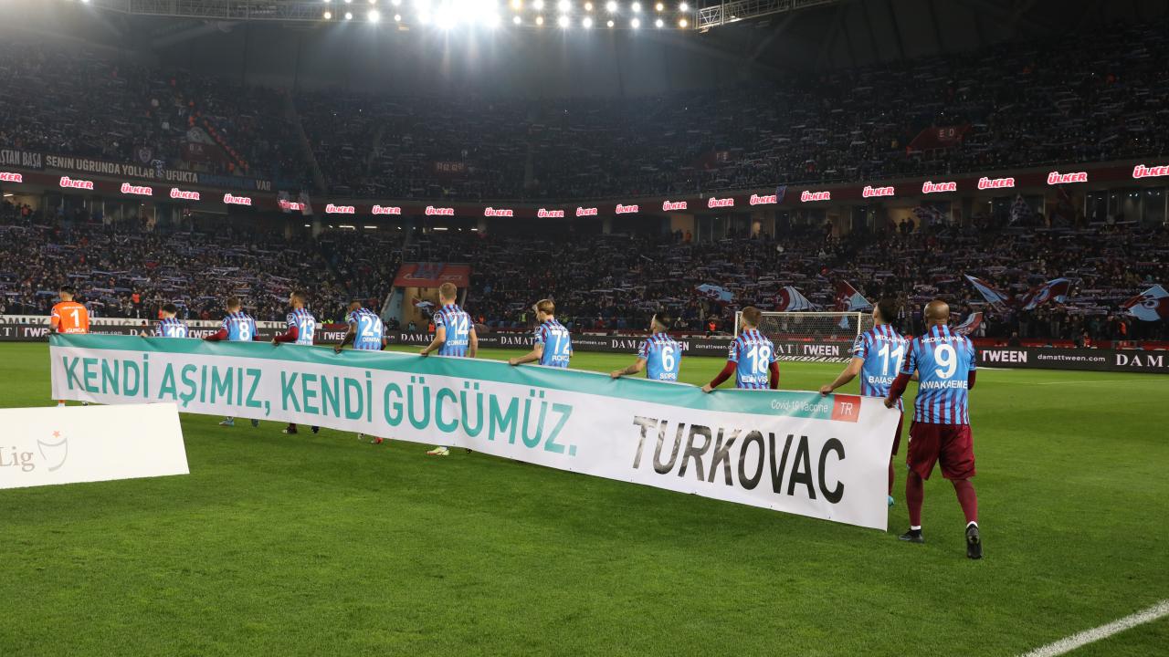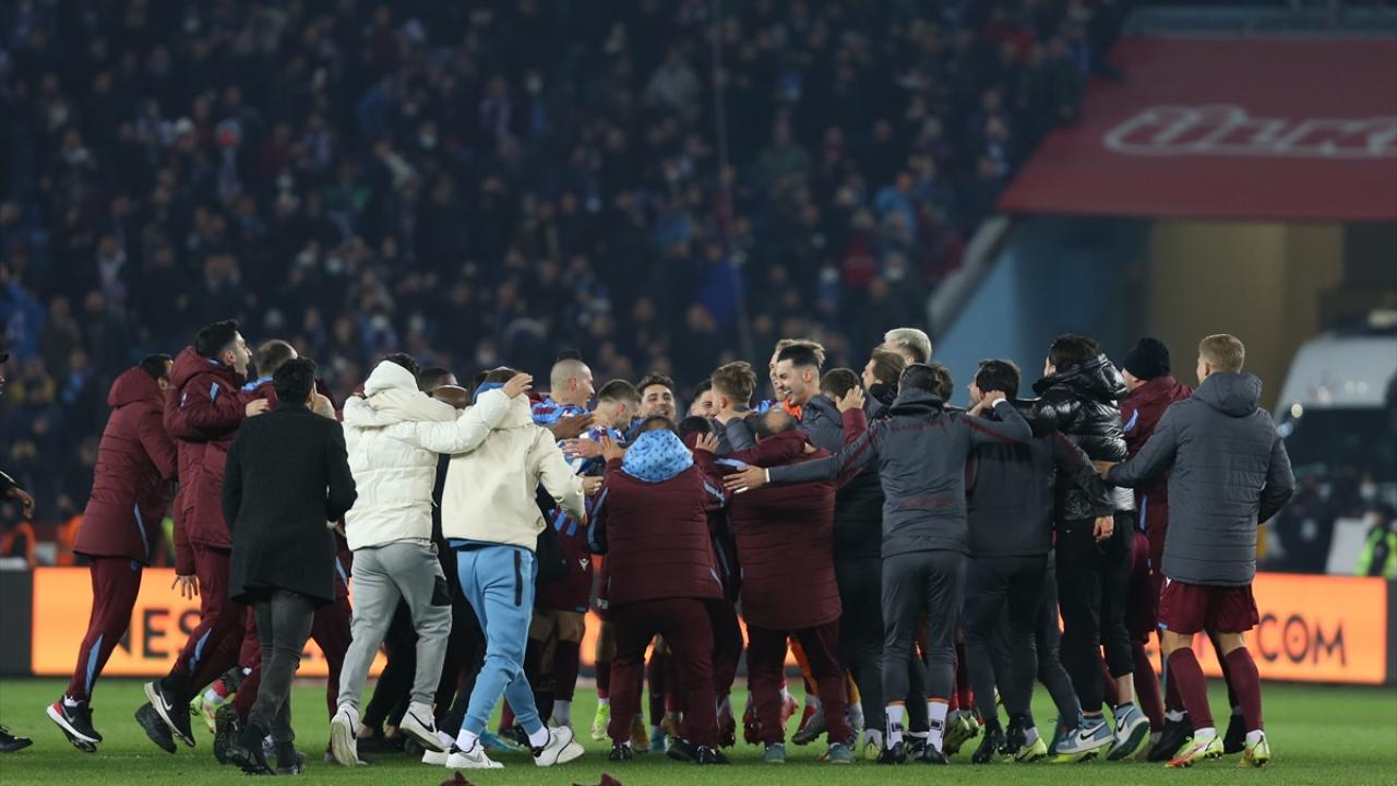 Maç sonunda orta alanda toplanan Trabzonsporlu futbolcular, kolbastı oynayarak galibiyeti taraftarlarla kutladılar.