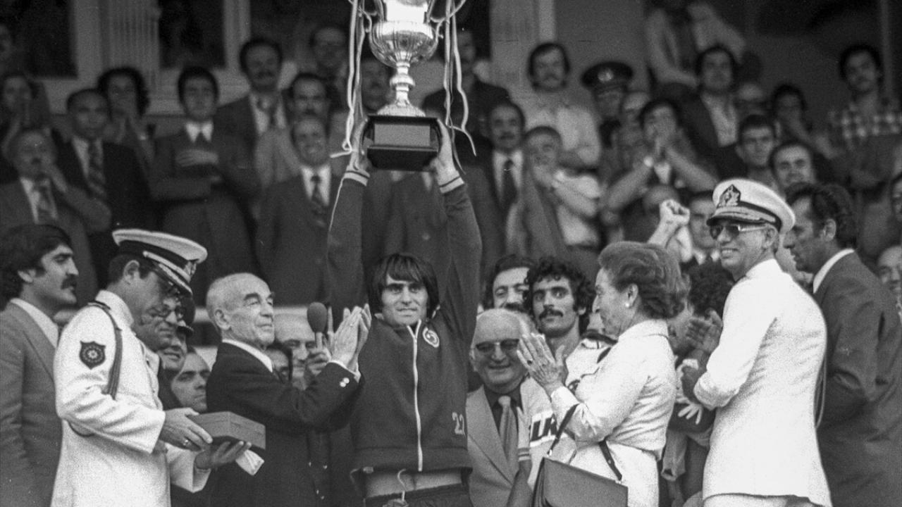 1978-1979 sezonunda Türkiye 1.Ligi`nde şampiyon olan Trabzonspor, aynı sezon Cumhurbaşkanlığı Kupası`nı da müzesine götürdü. Trabzonspor kupasını Cumhurbaşkanı Fahri Korutürk`ün (sol 3) elinden aldı. (Arşiv)-12.061978)