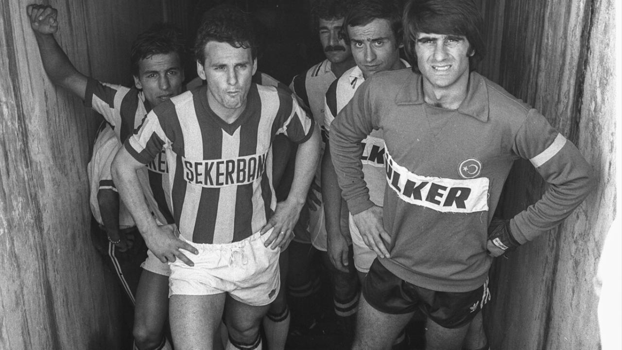 Cumhurbaşkanlığı Kupası için karşılaşan Fenerbahçe ve Trabzonsporlu futbolcular, tünel çıkışında bekliyor. (Arşiv-13.06.1978)
