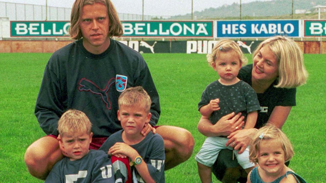 Trabzonspor`un transfer ettiği Loben`in eşi Diana ve dört çocuğu bordo-mavili takımın idmanında neşe kaynağı oldu. (Arşiv-25.09.2000)