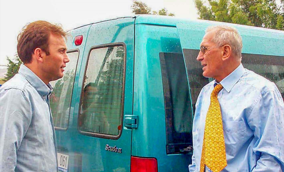 Trabzonspor takımı oyuncusu Hami Mandıralı, bonservisini alarak resmen kulüpten ayrıldı. Trabzonspor Başkanı Özkan Sümer (sağda), Mandıralı ile kulüp çıkışında sohbet etti. (Arşiv-20.06.2002)