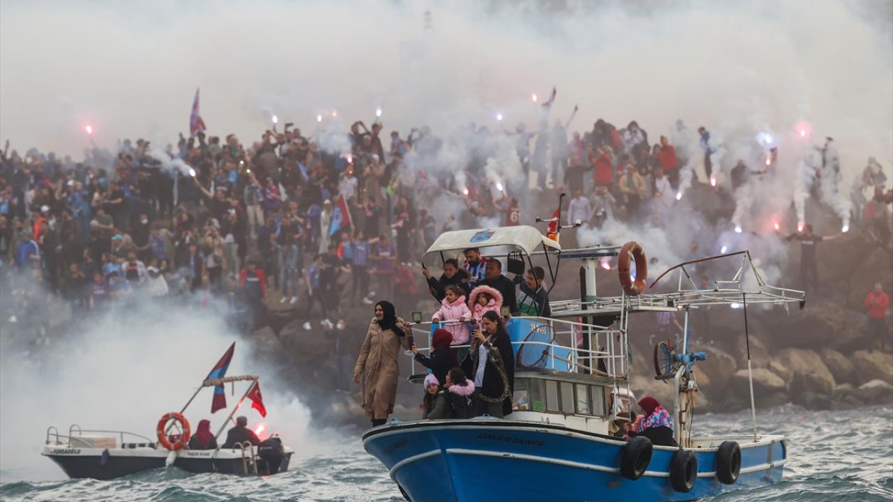 Spor Toto Süper Lig`in 2021-2022 sezonunun bitimine 3 hafta kala şampiyonluğunu ilan eden Trabzonspor takımı taraftarları sevinçlerini paylaştı. (Arşiv-30.04.2022)