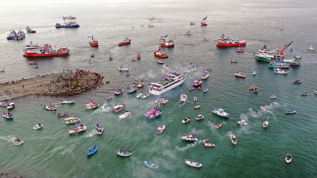 Spor Toto Süper Lig`in 2021-2022 sezonunun bitimine 3 hafta kala şampiyonluğunu ilan eden Trabzonspor, kupa töreni için yola çıktı. Bordo-mavililer, Mehmet Ali Yılmaz Tesisleri`nden deniz yoluyla Medical Park Stadı`na hareket etti. (Arşiv-14.05.2022)
