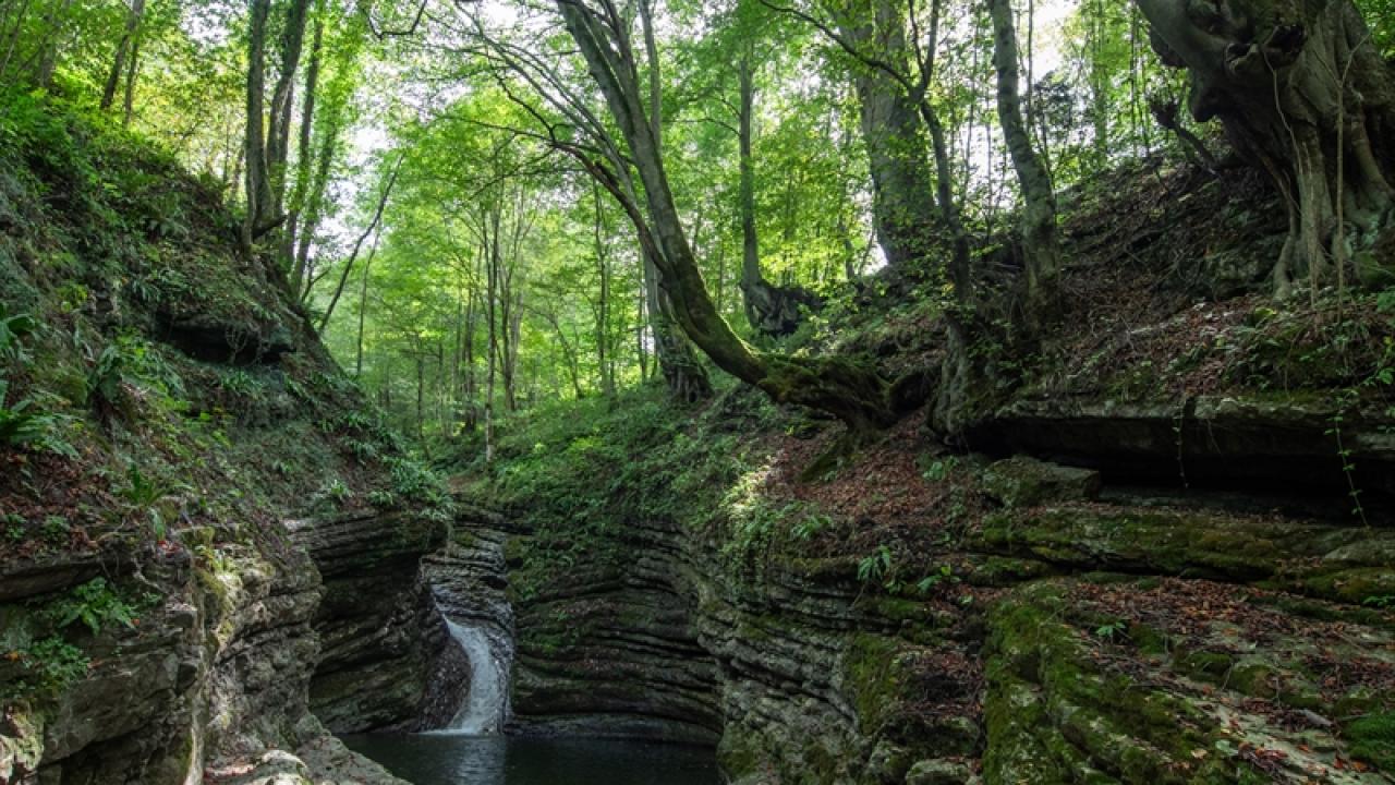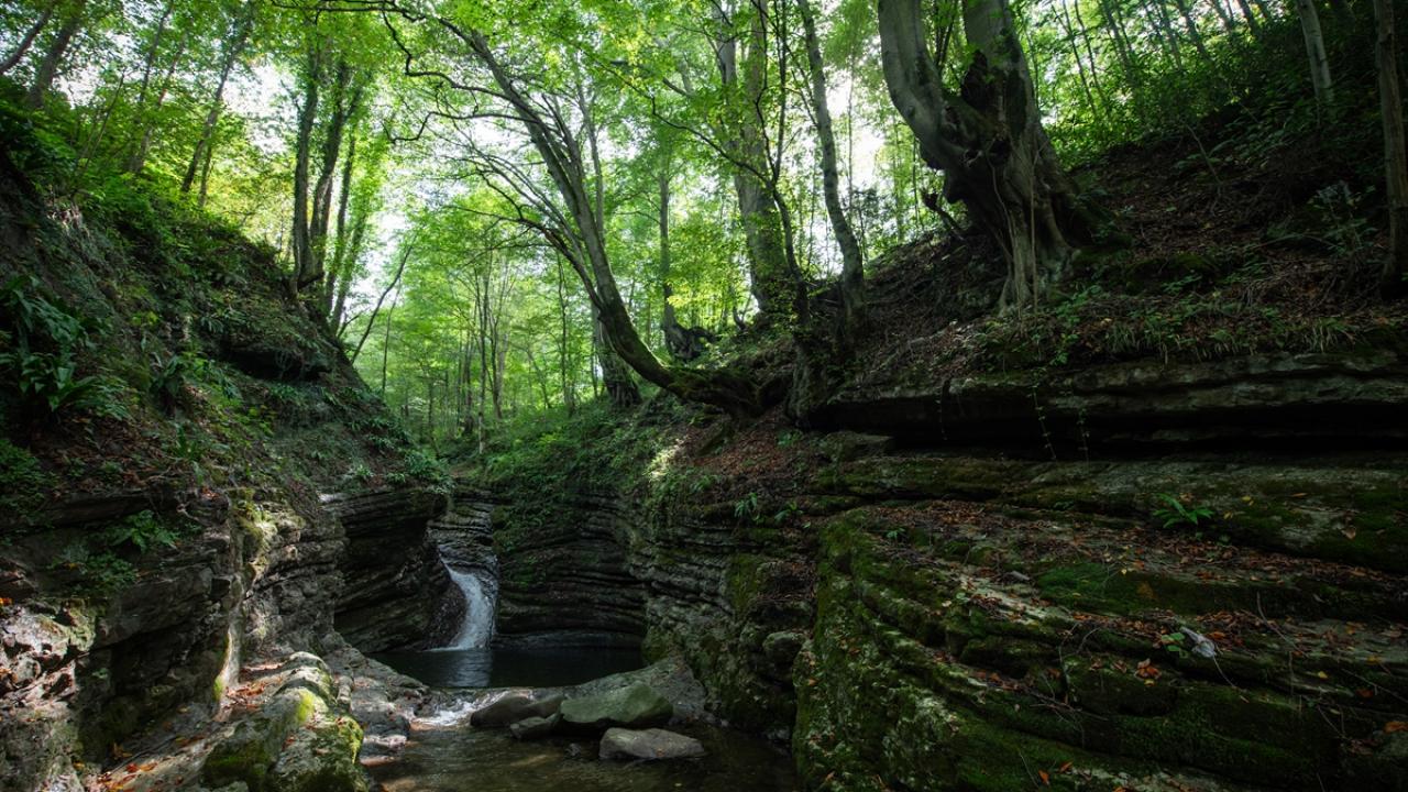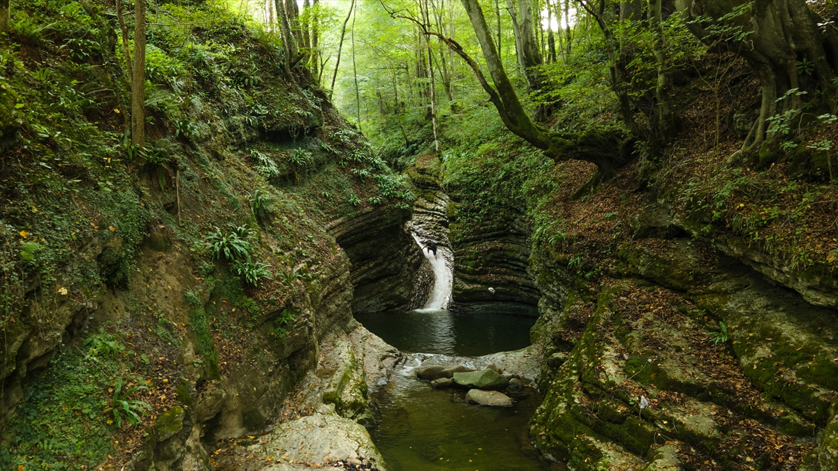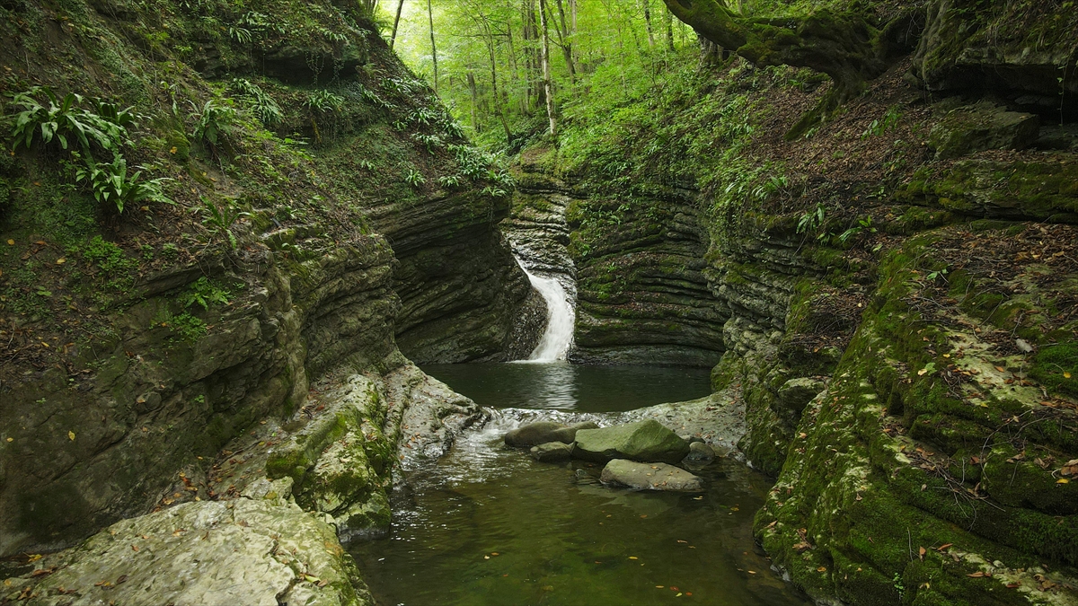Trabzon'un Tonya ilçesi sınırlarında yer alan ve "saklı cennet" olarak nitelendirilen Kudavas Şelalesi, yaklaşık 15 metre yüksekten dökülen suyun kayaları aşındırarak oluşturduğu kaydırak benzeri yapısıyla ziyaretçilerini karşılıyor.