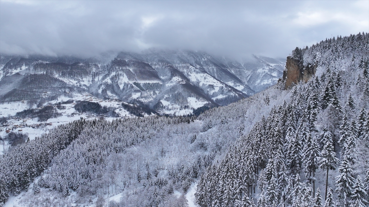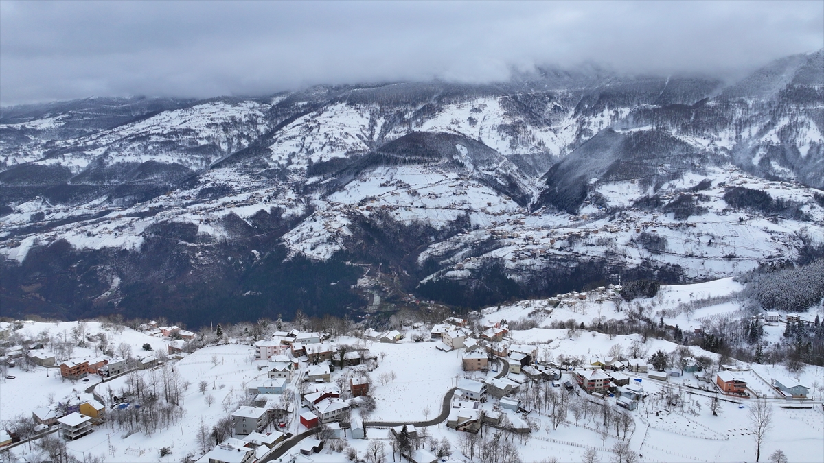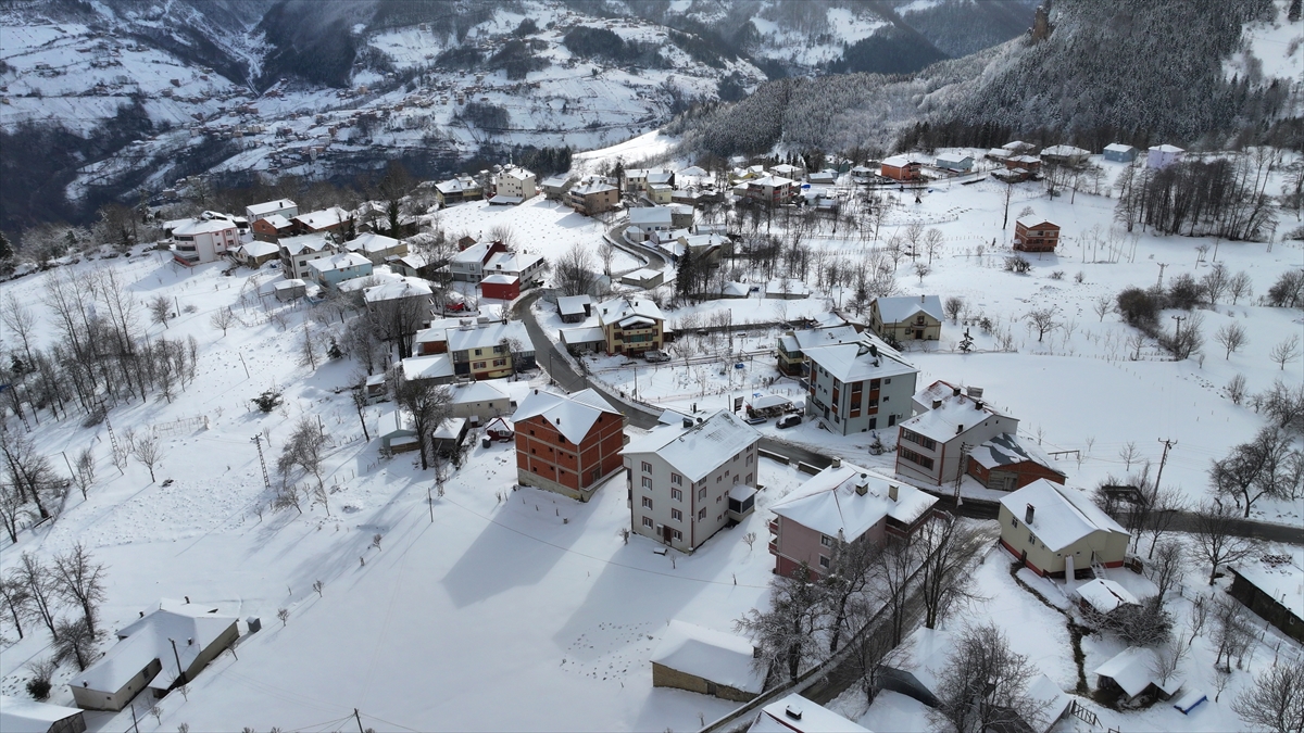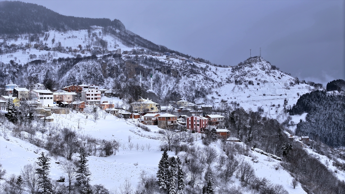 Trabzon'un önemli turizm destinasyonları arasında yer alan Çal Mağarası ile Şahinkaya'nın bulunduğu Düzköy ilçesinde kar yağışı etkili oldu.