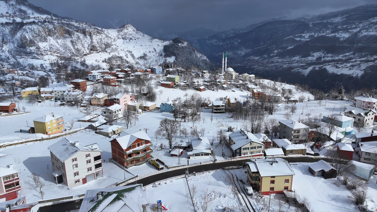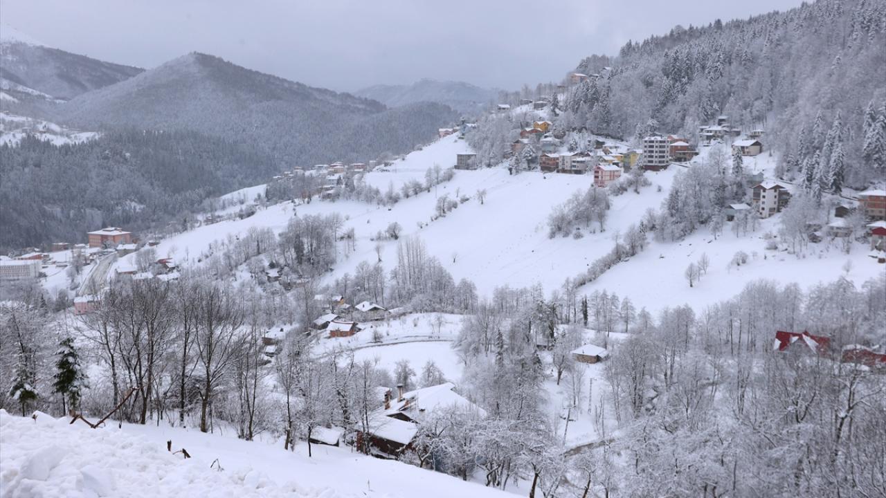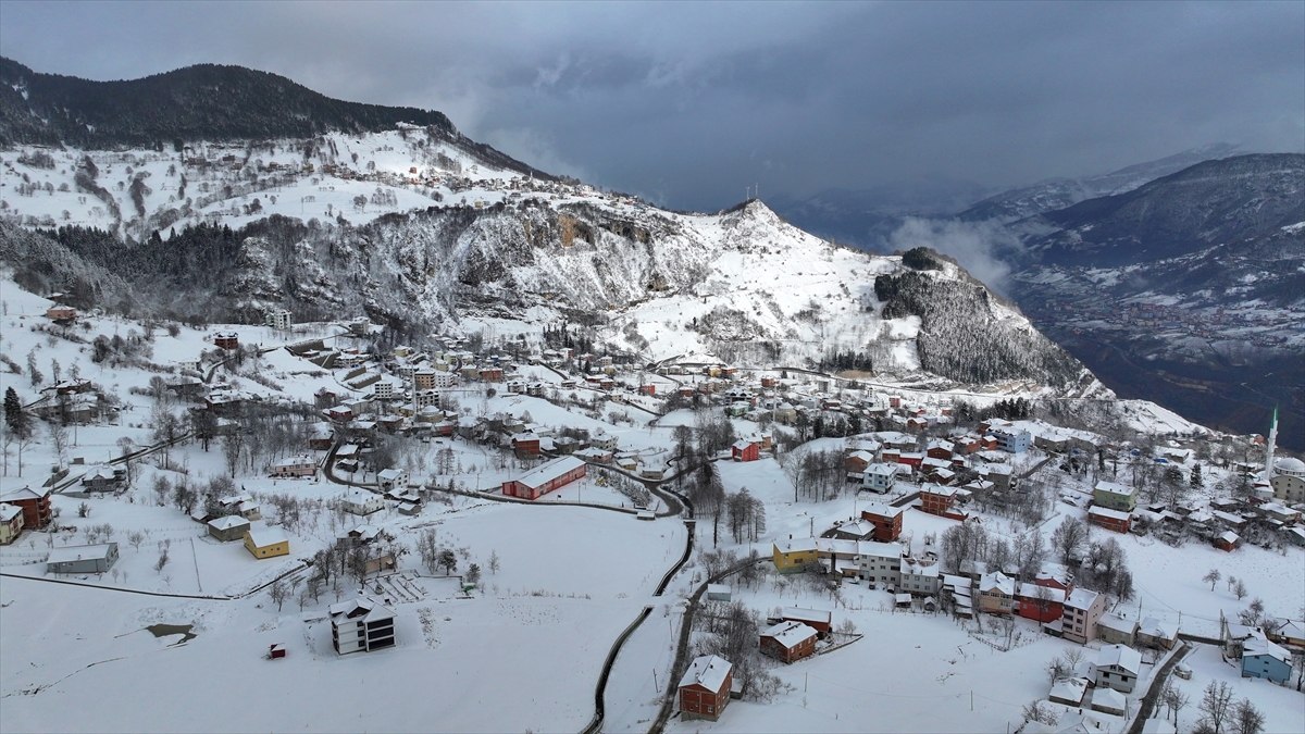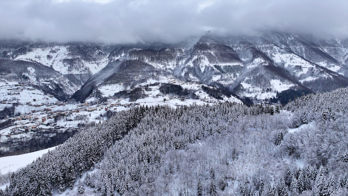 Trabzon'un önemli turizm destinasyonları arasında yer alan Çal Mağarası ile Şahinkaya'nın bulunduğu Düzköy ilçesinde kar yağışı etkili oldu.