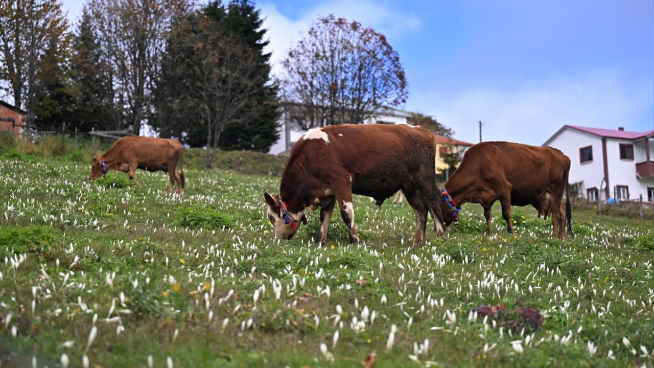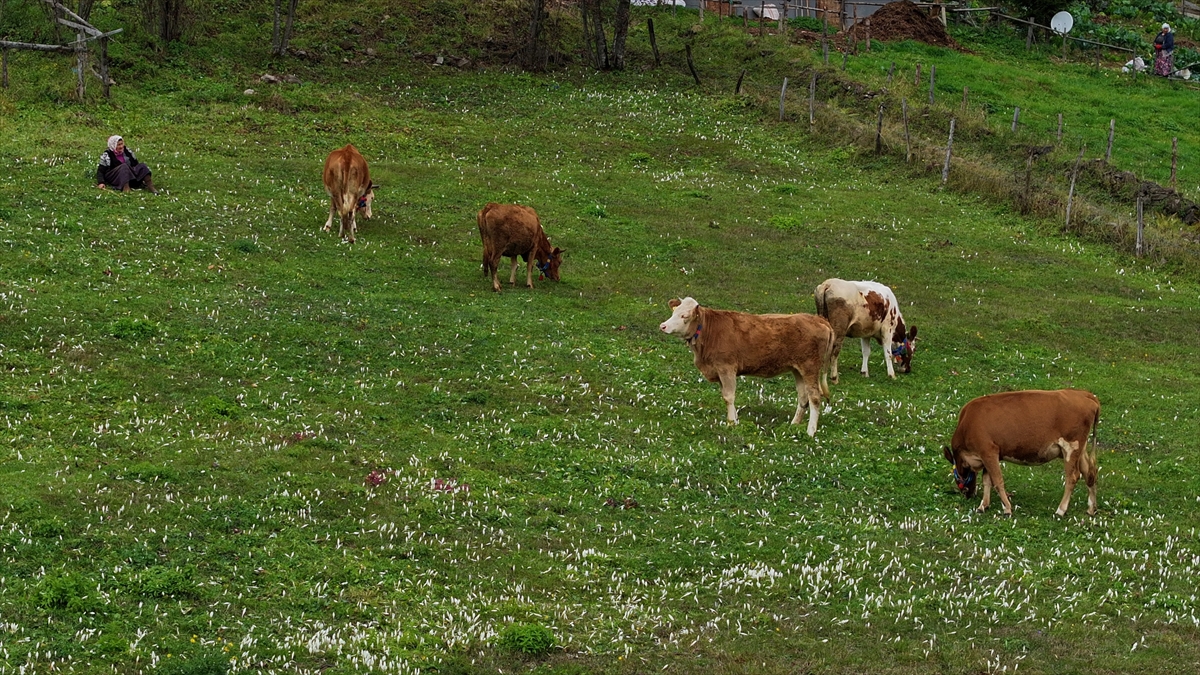 Trabzon`un Akçaabat ilçesine bağlı Kayabaşı Yaylası`nın Engin Oba mevkisi de hava sıcaklığının düşmesiyle vargitlerle kaplandı.