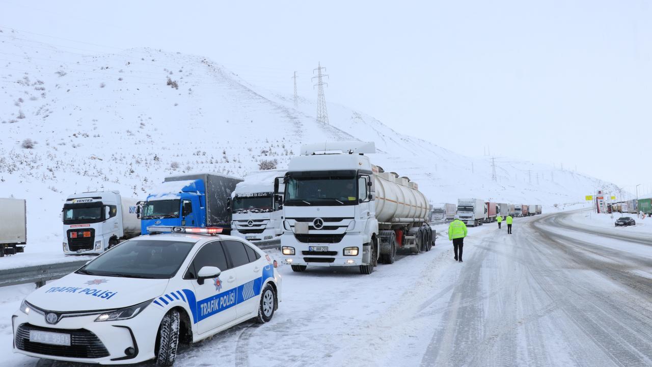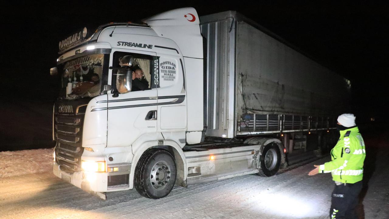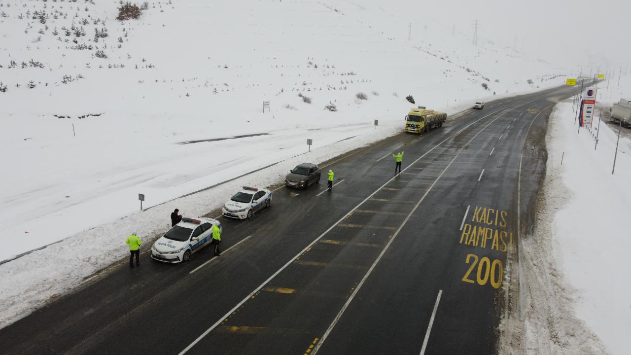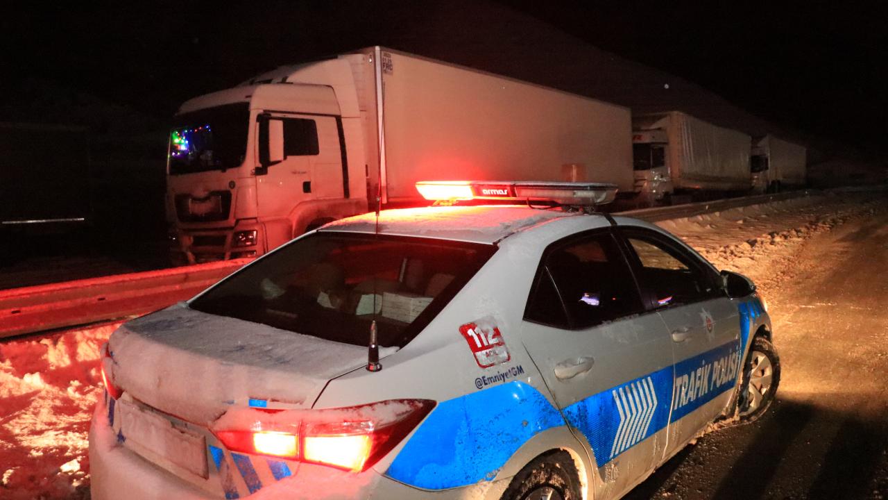 Kar kalınlığının 100 santimetreyi bulduğu ve buzlanma, sis ile tipinin ulaşımı etkilediği kara yolunda görev yapan polisler, tüm olumsuz hava koşullarına rağmen gece, gündüz demeden çalışıyor.