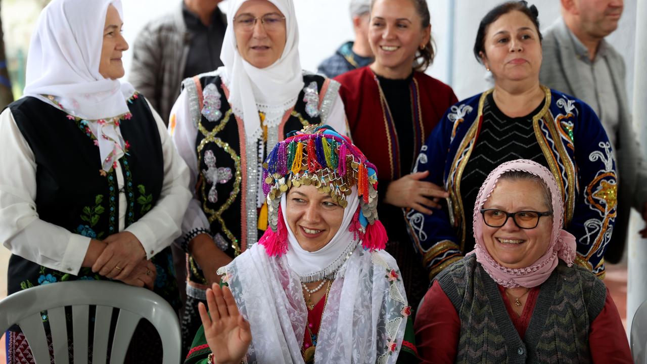 Köyde düzenlenen düğünde gelenek, temsili olarak canlandırıldı.
