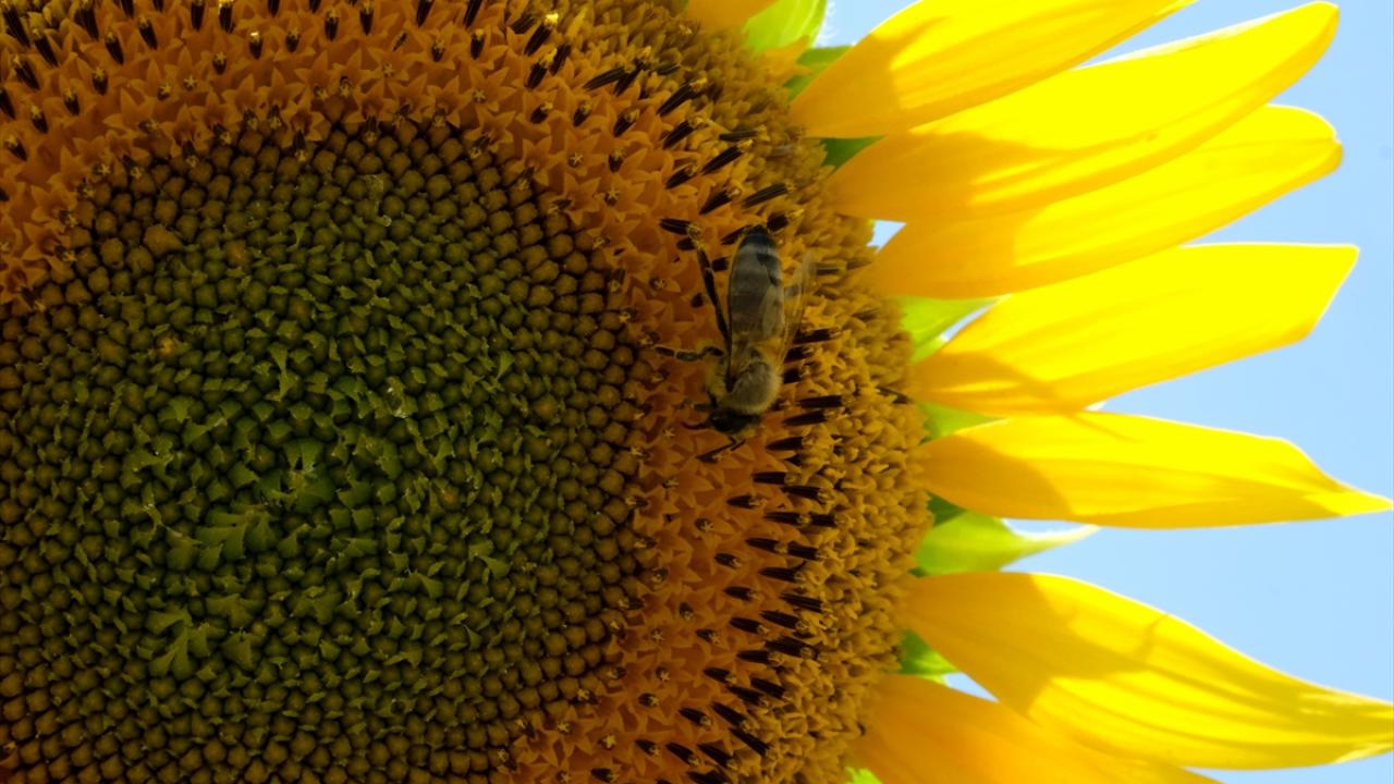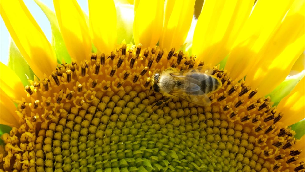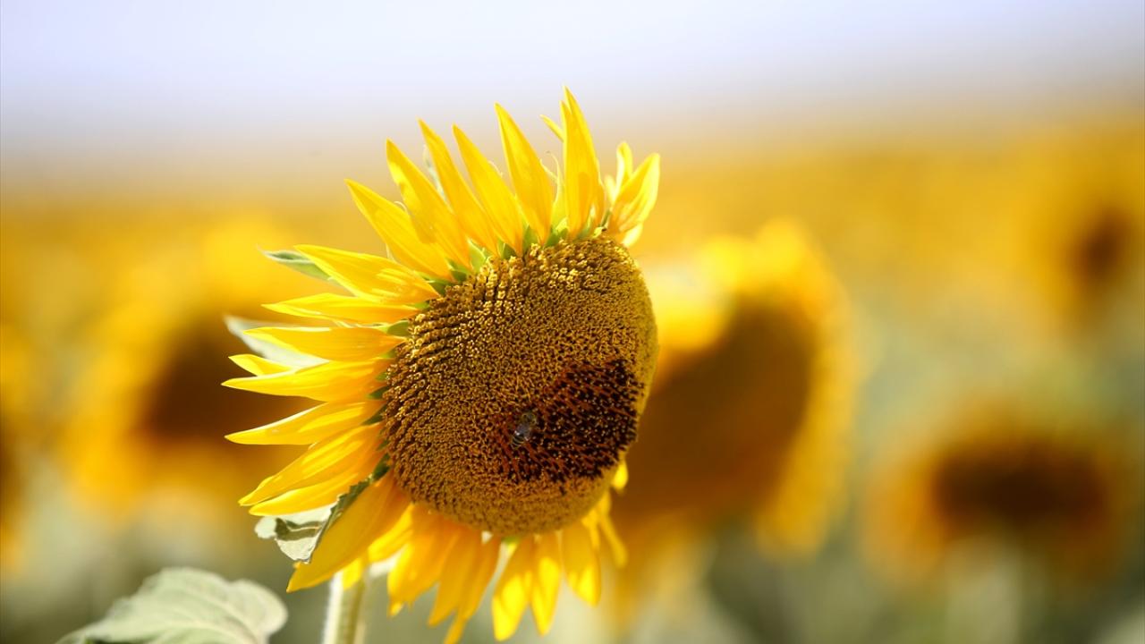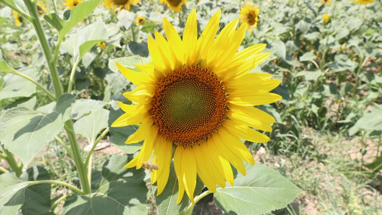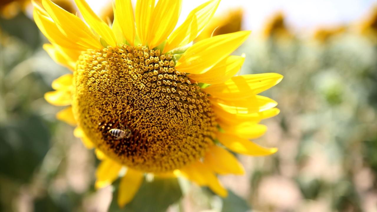 Ayçiçeklerinin polenlerini toplamak için yoğun çaba sarf eden civardaki bal arıları da dikkat çekiyor.