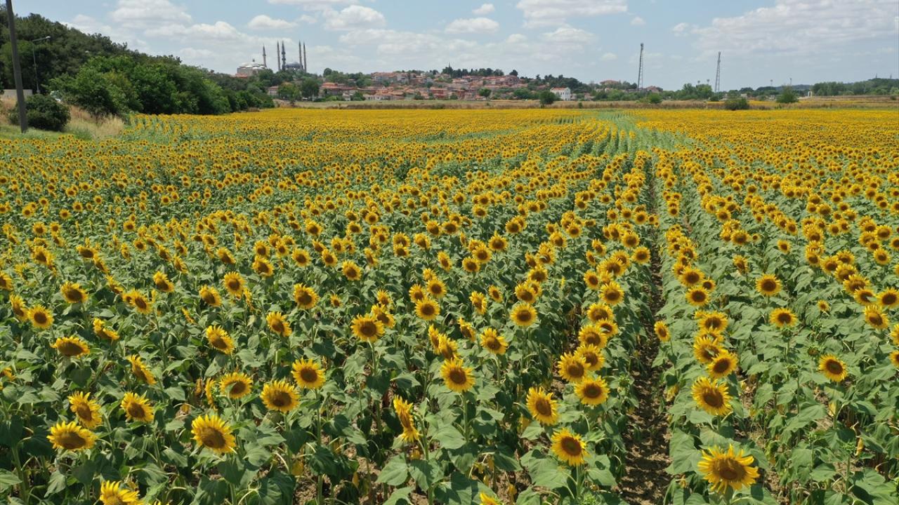Edirne ve Tekirdağ`da da ayçiçeği tarlaları da sarıya boyandı.