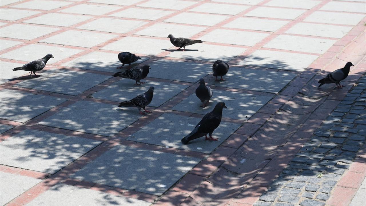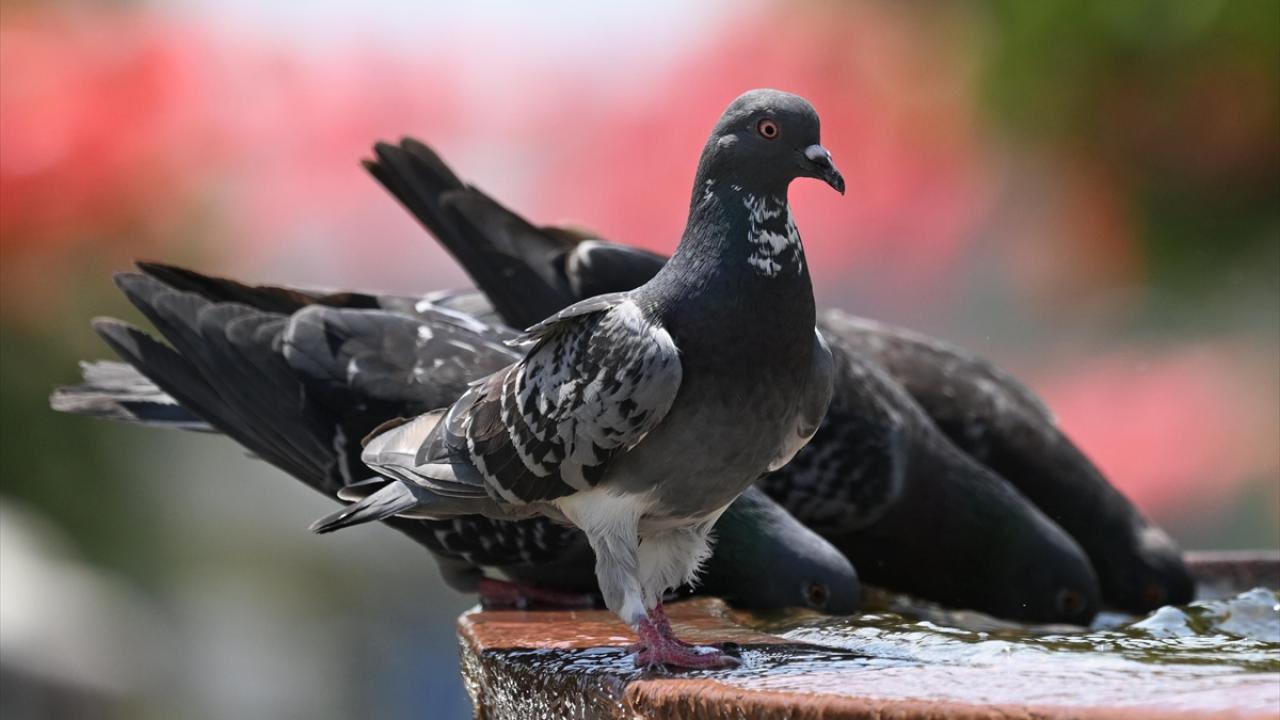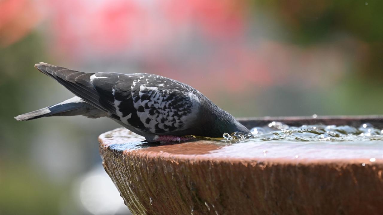 Kuşlar da süs havuzlarında yıkanarak serinlemeye çalıştı.