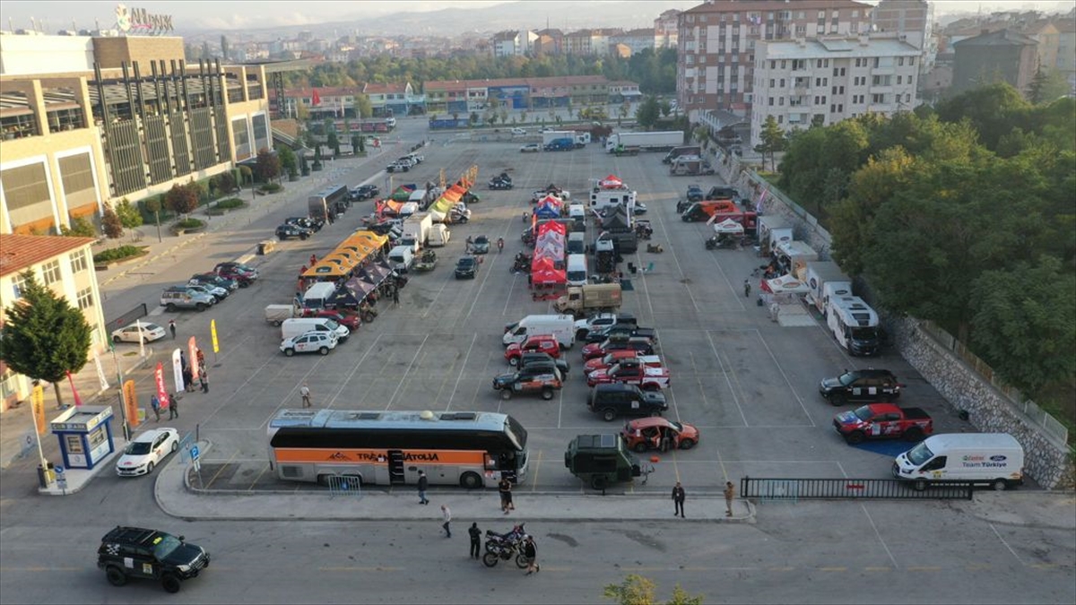 Bir pazar alanında oluşturulan servis noktasında araçlarının bakımını yapan sürücüler, yarışın üçüncü gününde Sivas Yıldız Dağı`ndaki kamp alanına ulaşmak üzere Çorum`dan ayrıldı.