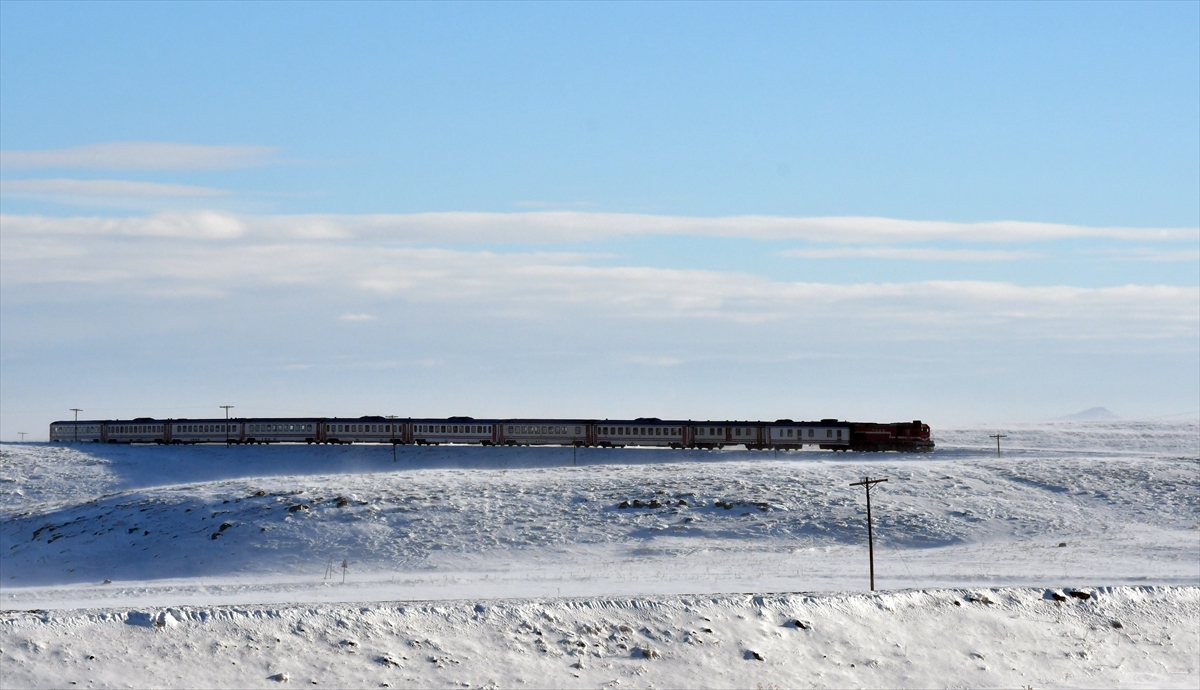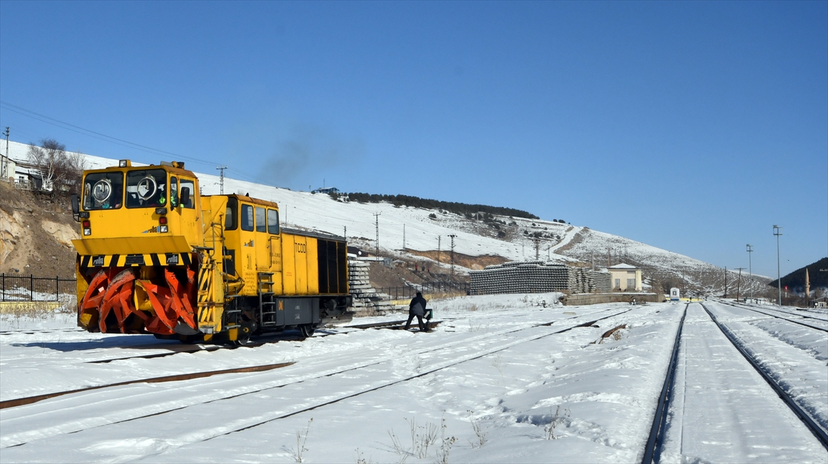 Kış şartlarının hüküm sürdüğü bölgede 33 yıldır çalışan Birol Akdağ, kar kalınlığının 2 metreyi bulduğu güzergahta demir yolunu açık tutmak için kar küreme aracıyla kar savuruyor.