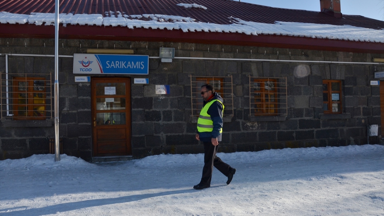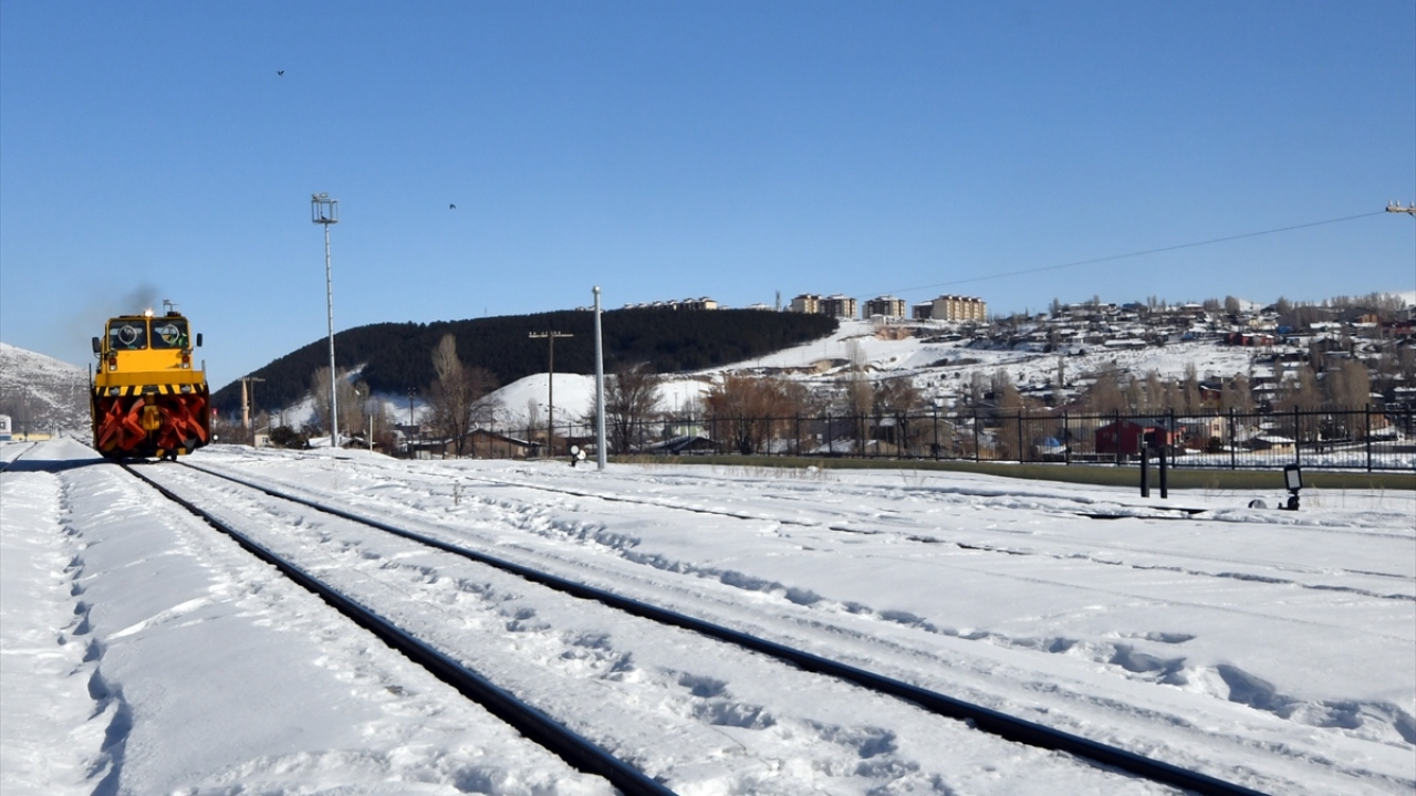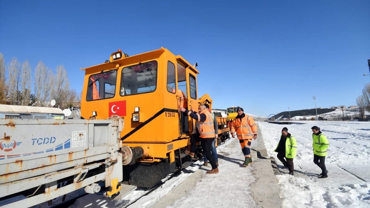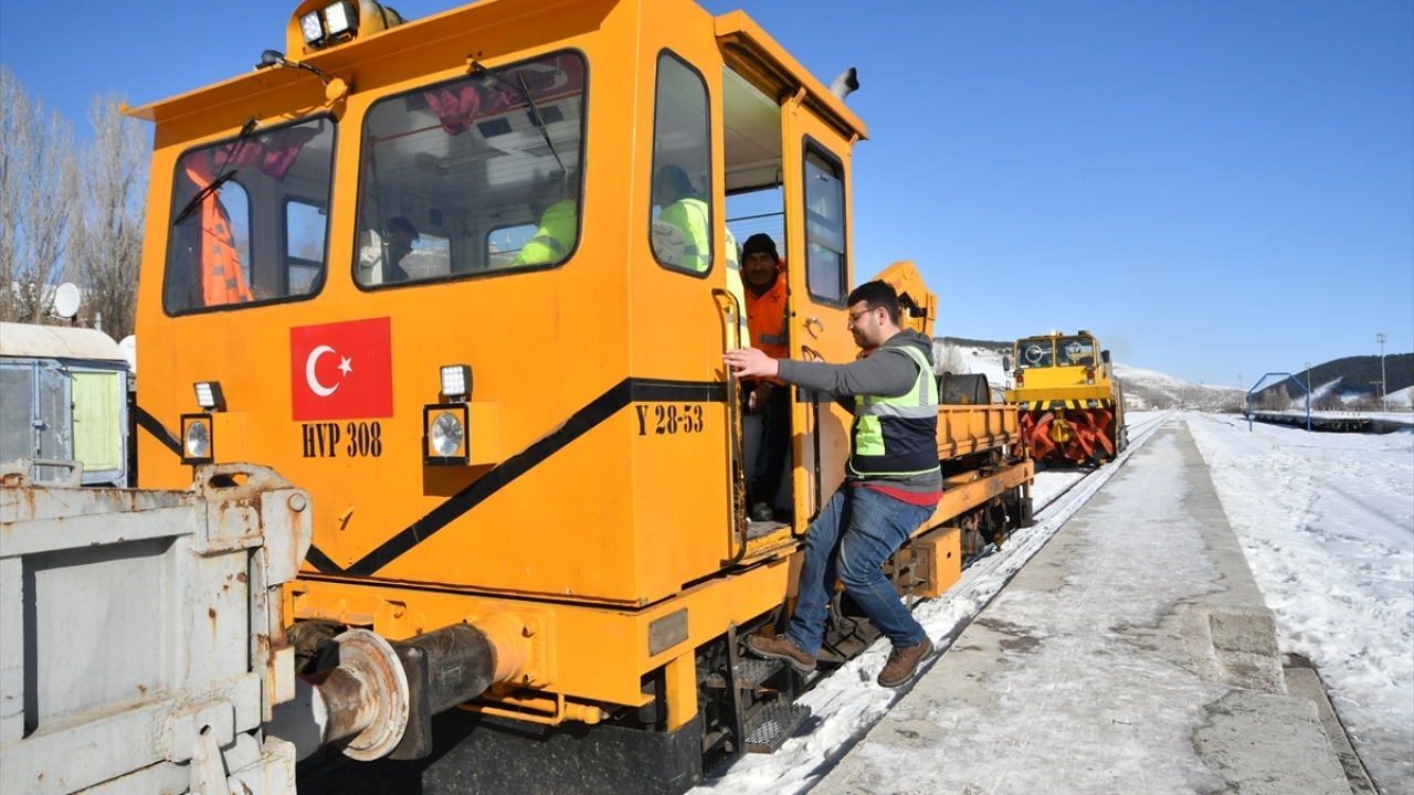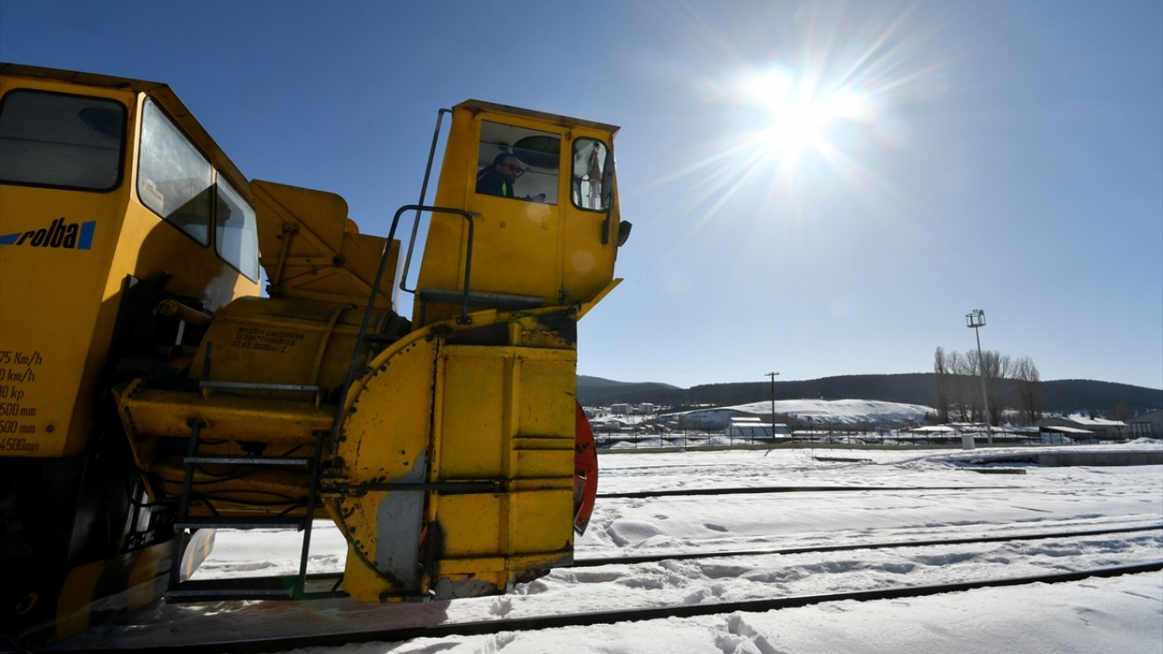 Kar küreme aracı operatörü Birol Akdağ, görev yaptığı Kars'ın Sarıkamış ilçesinde demir yolu ulaşımının aksamaması için 33 yıldır çalışıyor.