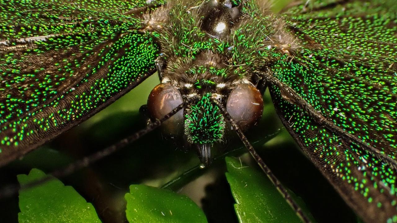 Gözle görülemeyen, makro objektifle görüntülenen kelebekler, pullu kanatları, gözleri, ağzı ve bacakları, sıra dışı yapısıyla dikkati çekiyor.