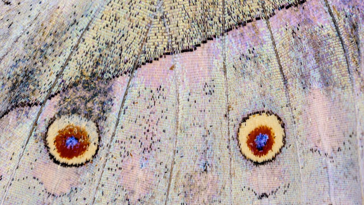 Kelebeğin pipet veya hortuma benzeyen ağız yapısı vardır. Kelebek ağzını kullanmadığı zaman rulo şeklinde bekletir, kullanacağı zamanda açarak nektar denilen sıvıyı içerek doyar. Kelebekleri çok daha yakından inceleyerek o dünyayı çok daha detaylı öğrenebiliriz. Kelebeğin kanatlarında milyonlarca pul bir araya gelerek çeşitli şekiller oluşturuyor. Mesela bu şekil göze benzeyebiliyor. O göz şekli avcıyı korkutmak için kullanılıyor."