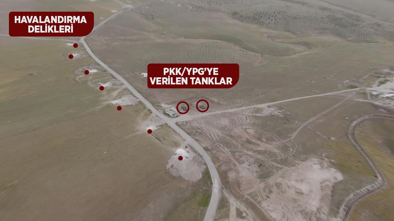 Teröristlerin kazdığı derin hendekler ile bölgede iki tank da havadan görüntülendi.