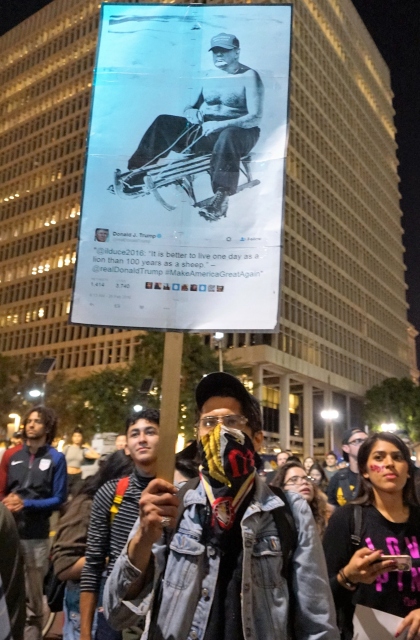 Donald Trump'ın ABD Başkanlığına seçilmesinin ardından Trump karşıtı gösteriler devam ediyor. California eyaletine bağlı Los Angeles kentinde göstericiler ikinci gün de sokakları doldurdu. Şehir merkezinde yürüyen binlerce Trump karşıtı, yolları trafiğe kapadı.