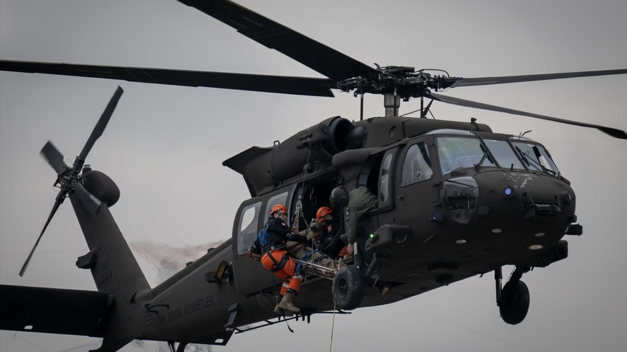 Helikopterlerle alanda havadan keşif yapıldı. Başka bir helikopterle ise bölgeye yük bırakıldı.