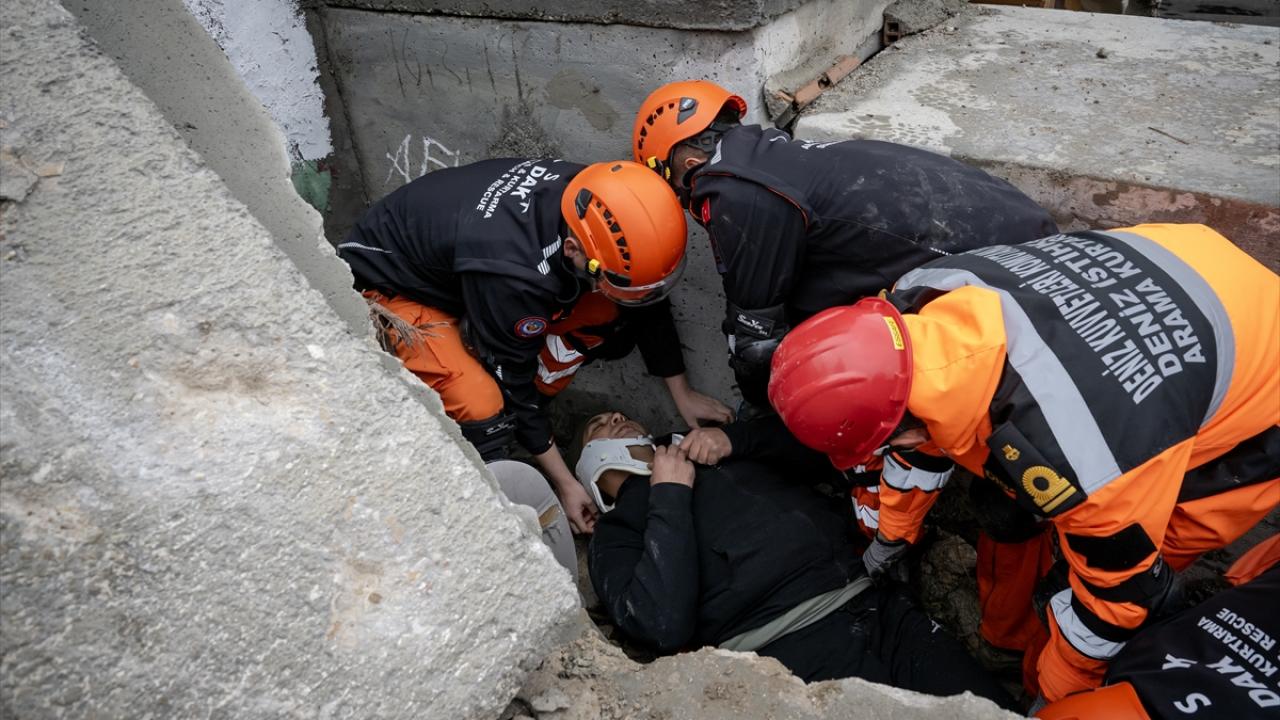 Deprem senaryosu doğrultusunda arama kurtarma ekibi enkaza girerek afetzedeleri kurtardı. Yeri tespit edilerek kurtarılan kişiler, sağlık ekiplerine teslim edildi.
