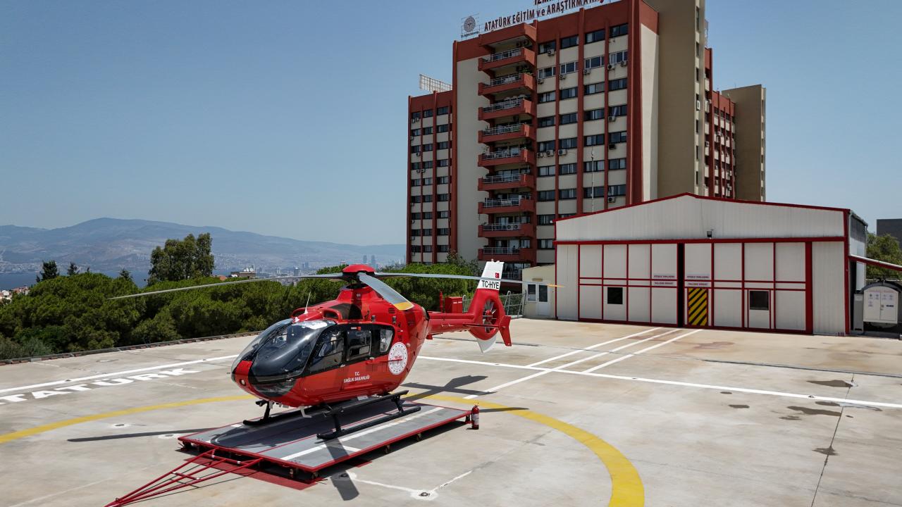 İzmir Katip Çelebi Üniversitesi Atatürk Eğitim ve Araştırma Hastanesi`nin bahçesindeki heliport alanında görevli bulunan ambulans helikopter, Ege Bölgesi`ndeki iller başta olmak üzere birçok kentte hizmet veriyor.