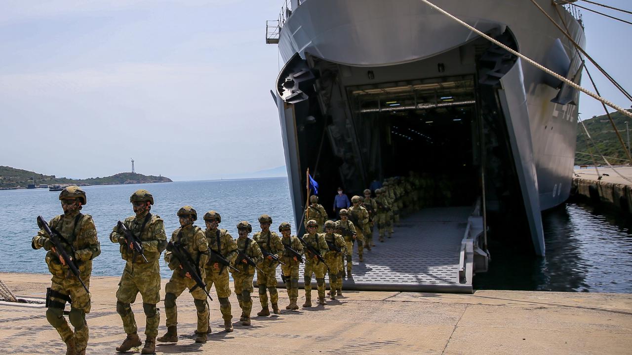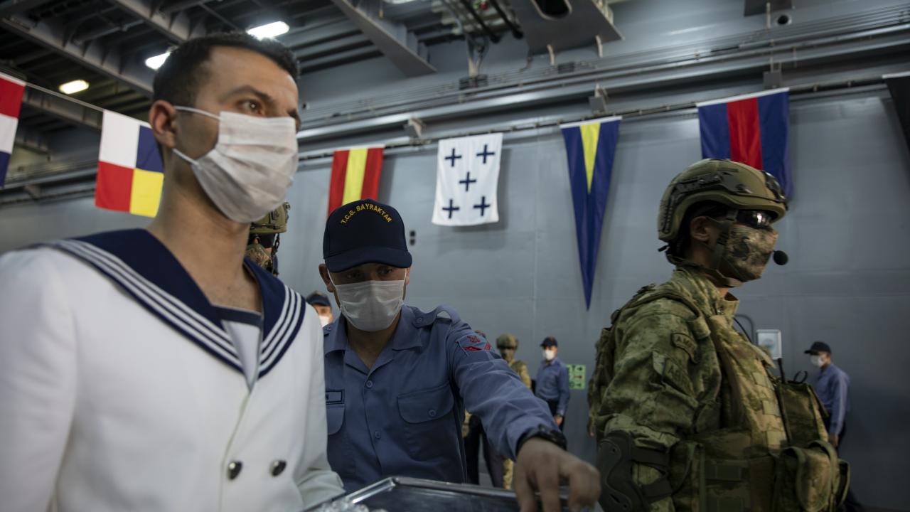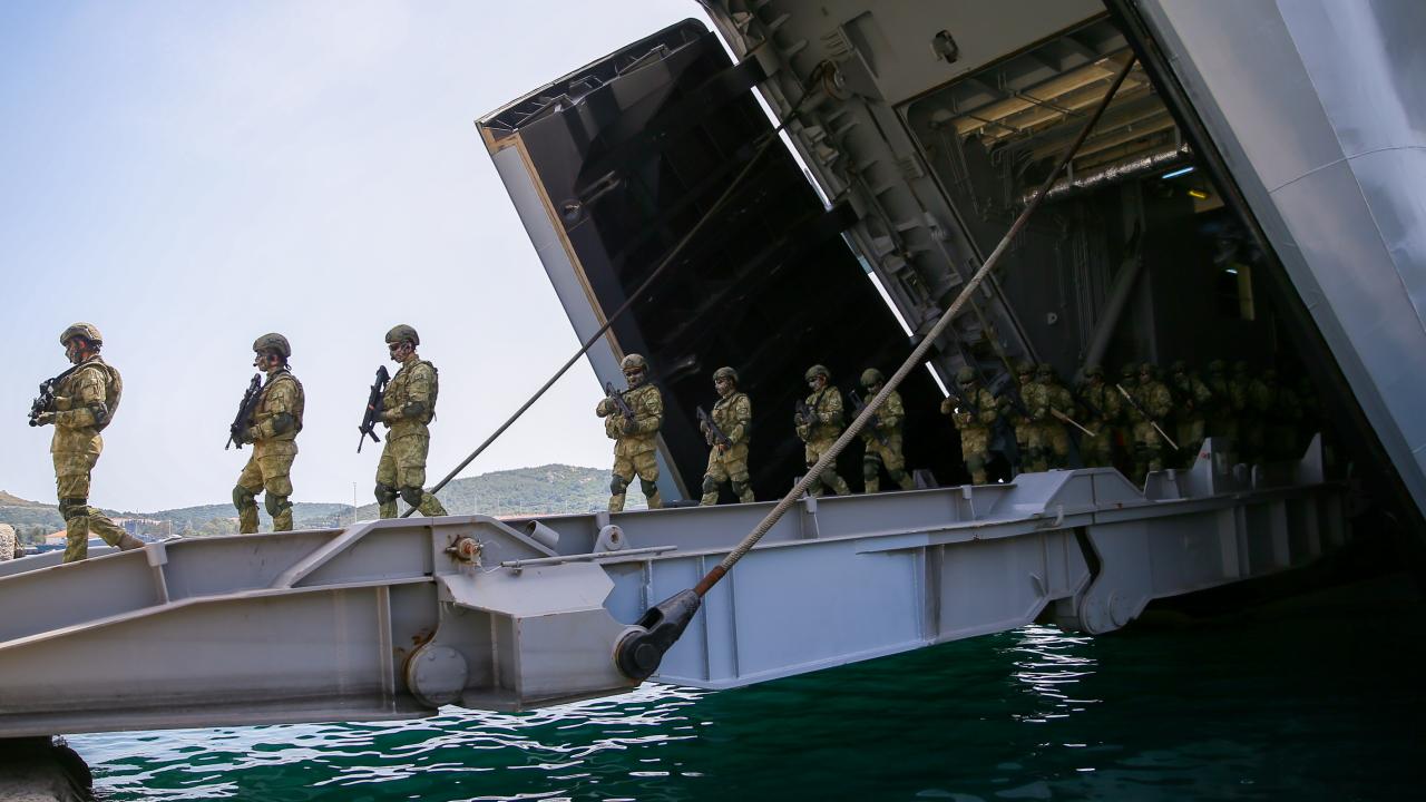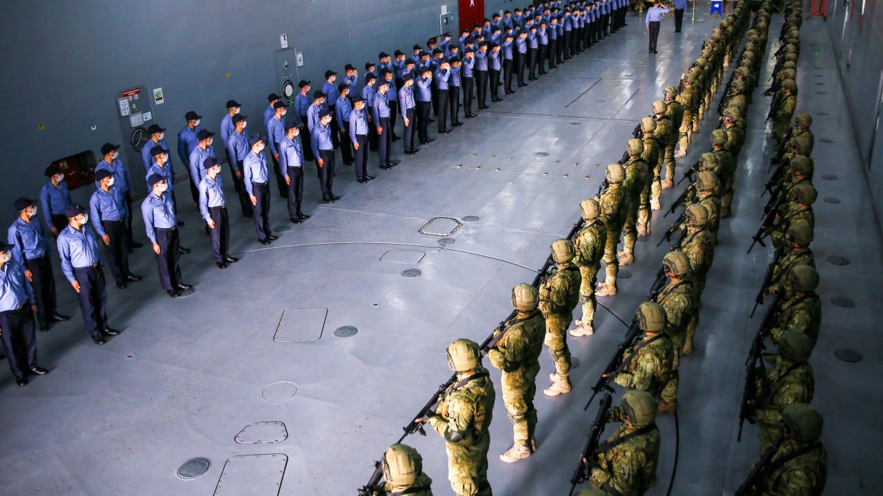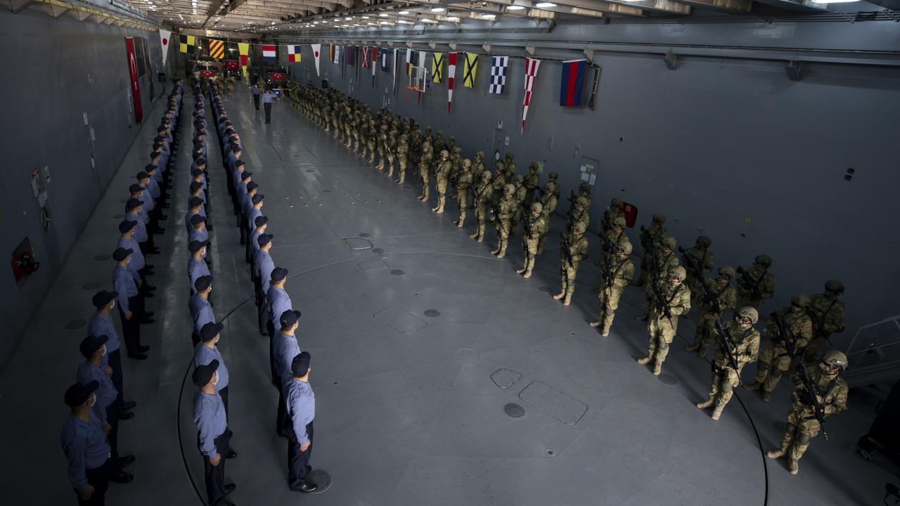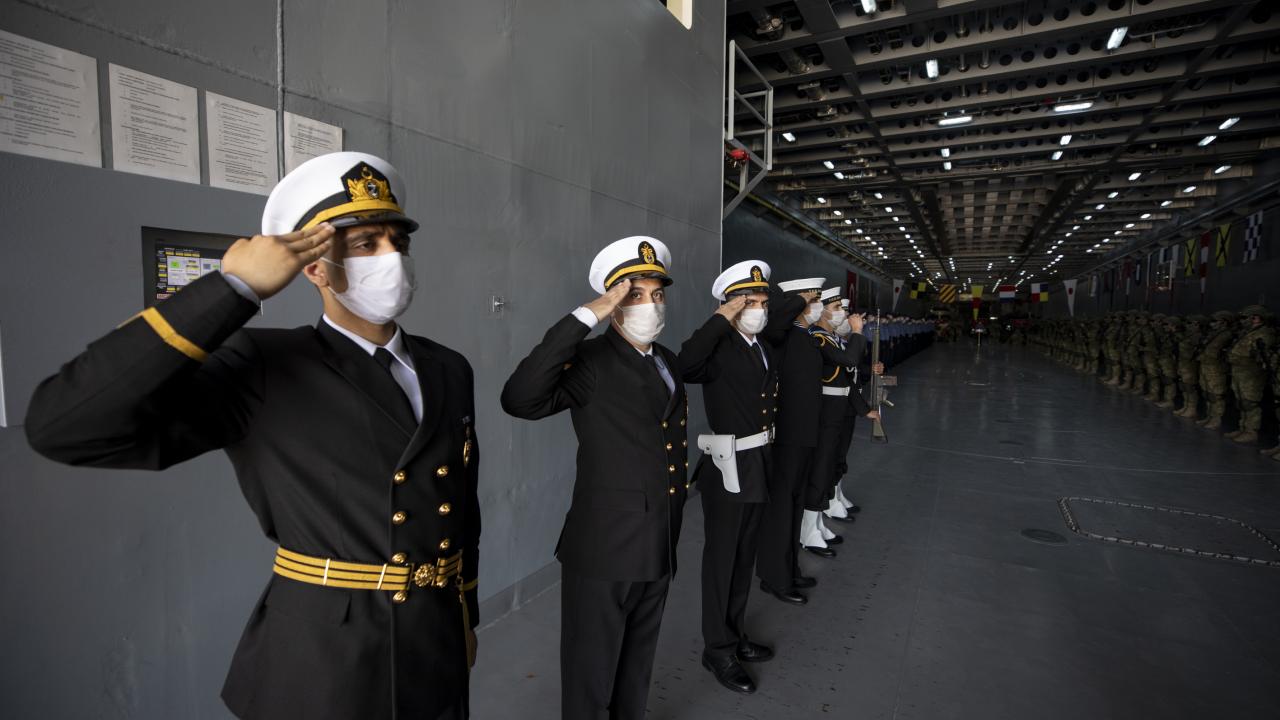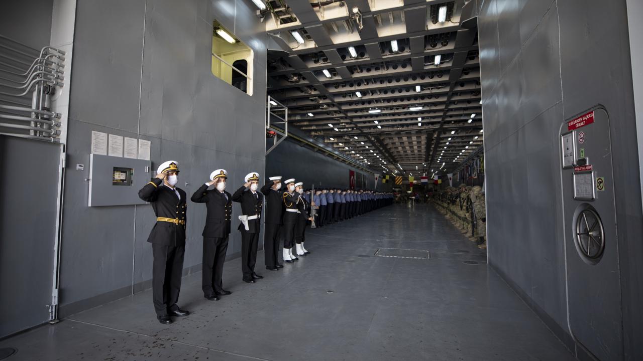 Deniz Kuvvetleri Komutanlığına bağlı yerli ve milli çıkarma gemisi TCG Bayraktar'da görevli personel ile gemideki amfibi deniz piyadeleri Ramazan Bayramı'na vatan nöbeti tutarak giriyor.