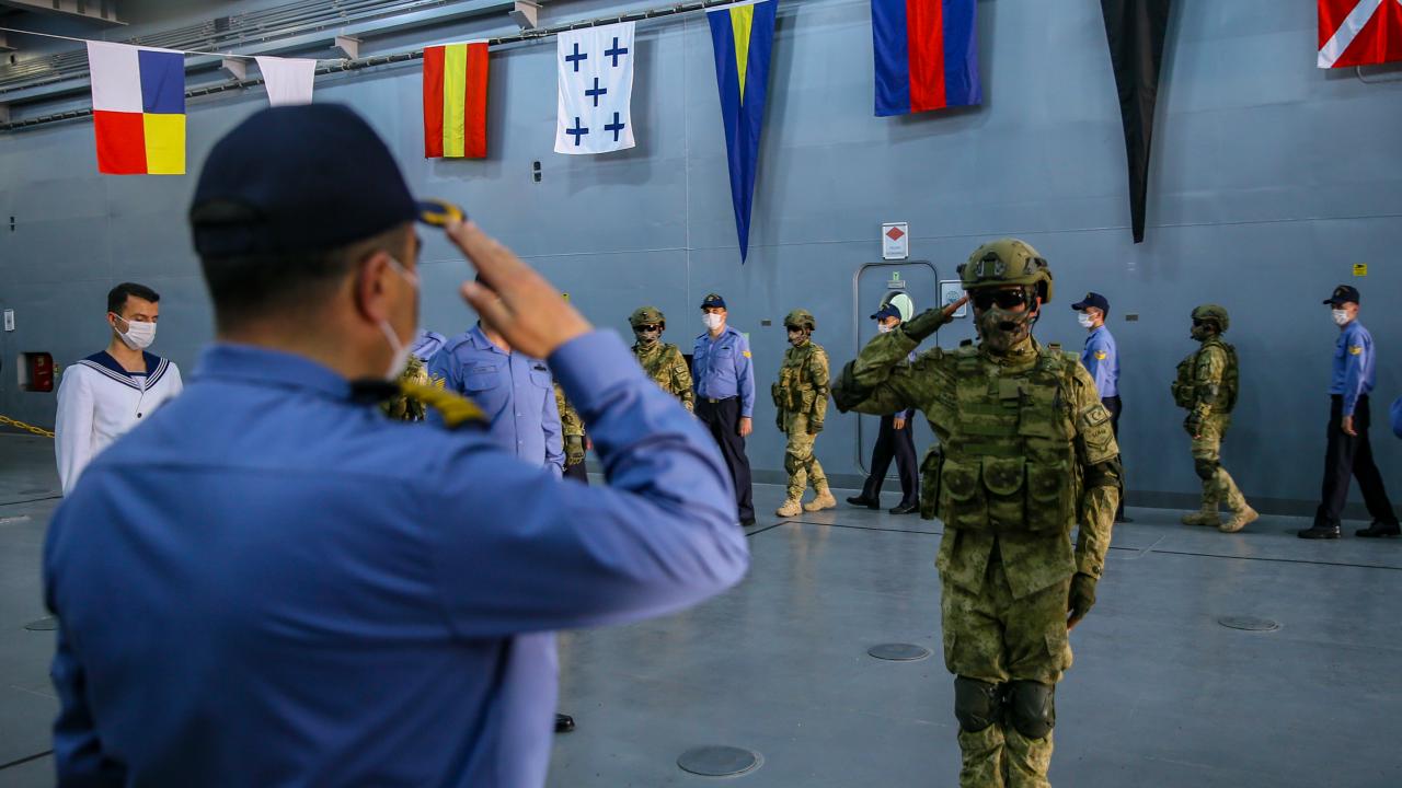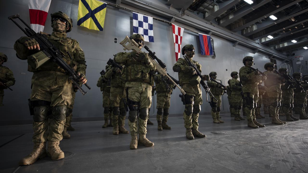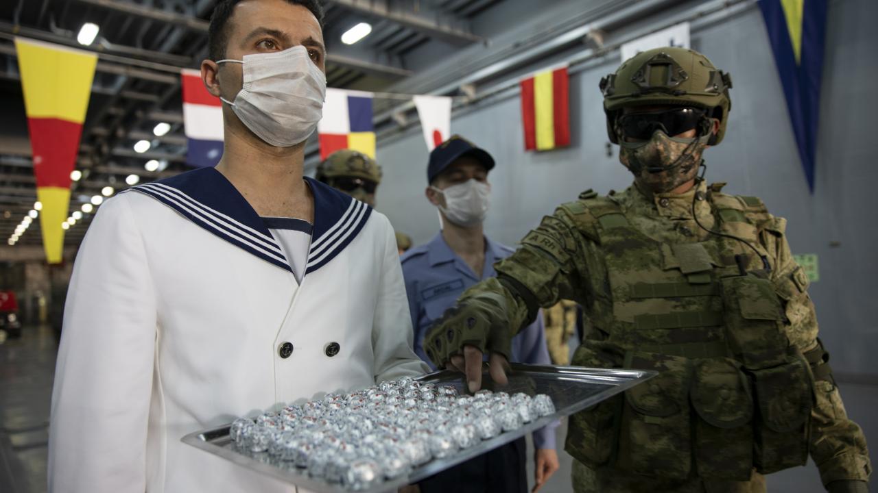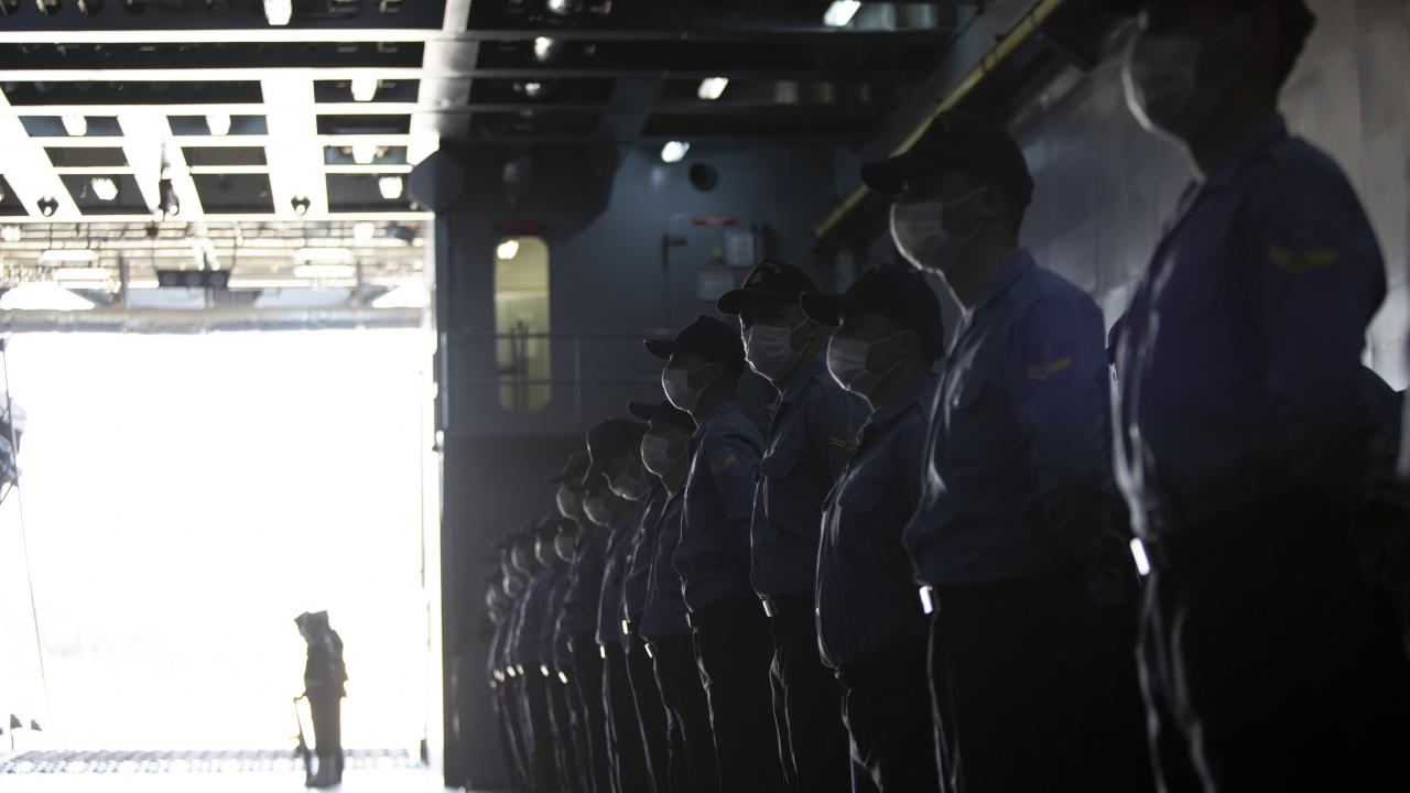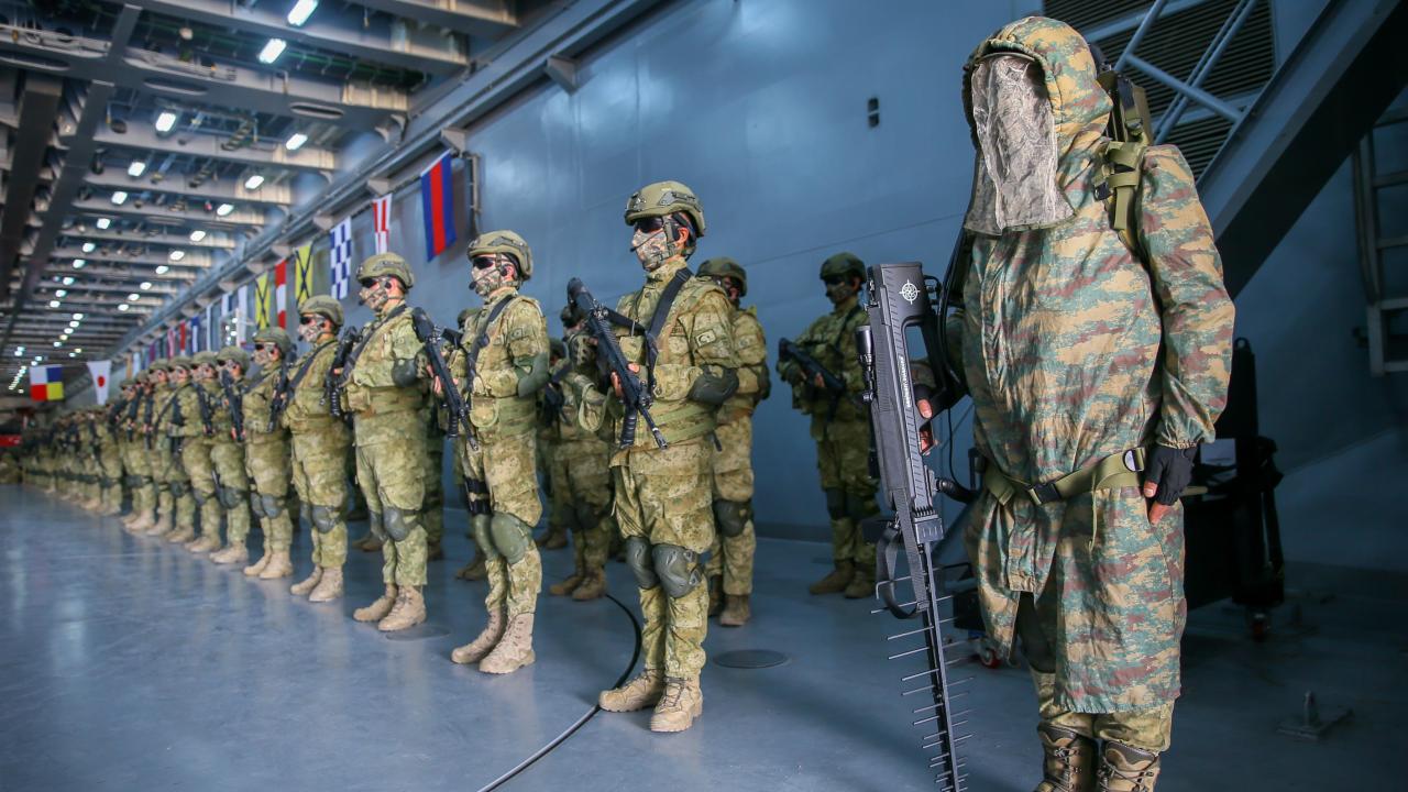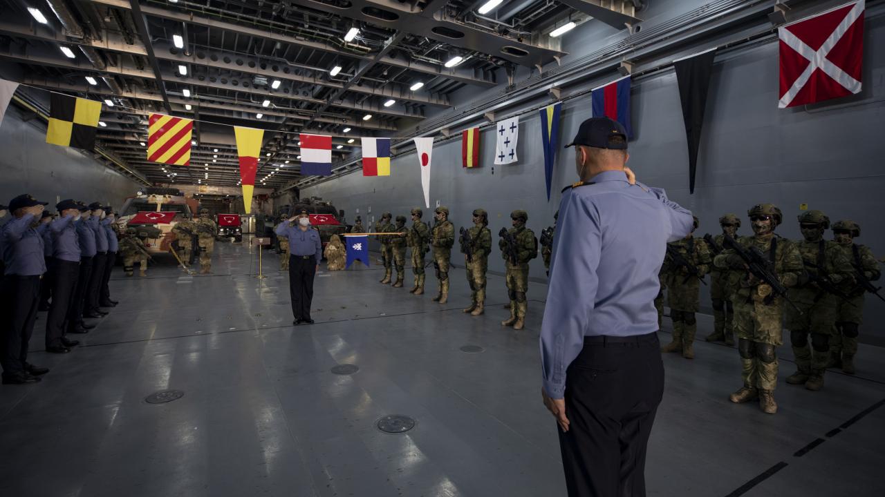 Deniz Kuvvetleri Komutanlığına bağlı yerli ve milli çıkarma gemisi TCG Bayraktar'da görevli personel ile gemideki amfibi deniz piyadeleri Ramazan Bayramı'na vatan nöbeti tutarak giriyor.