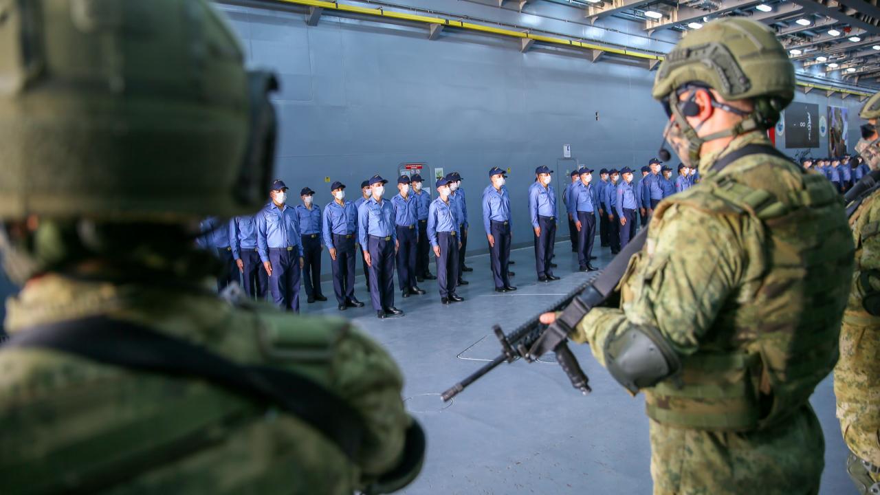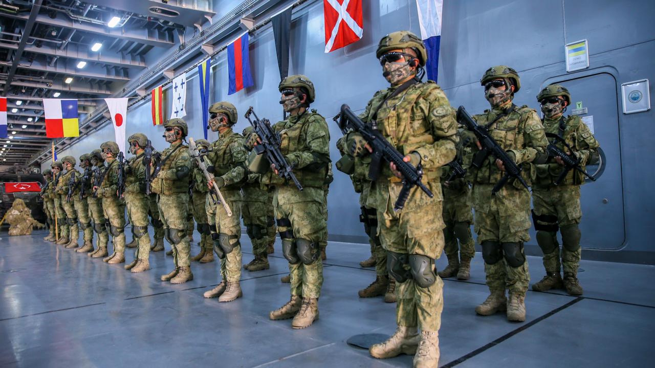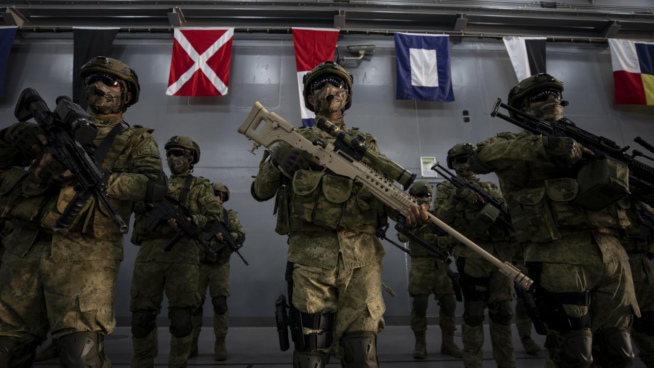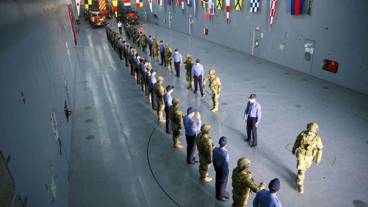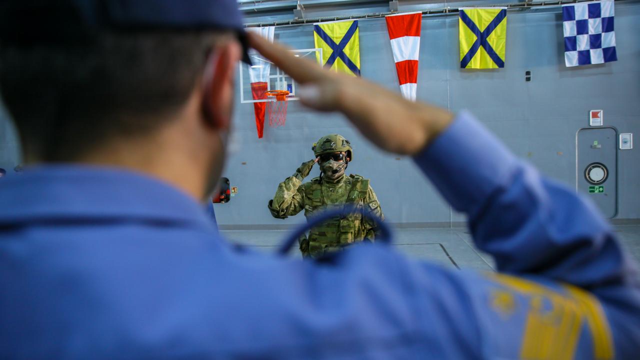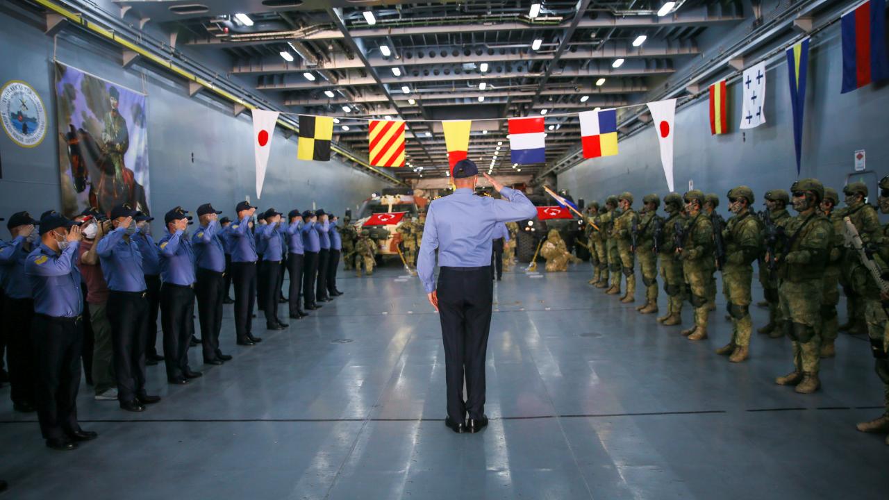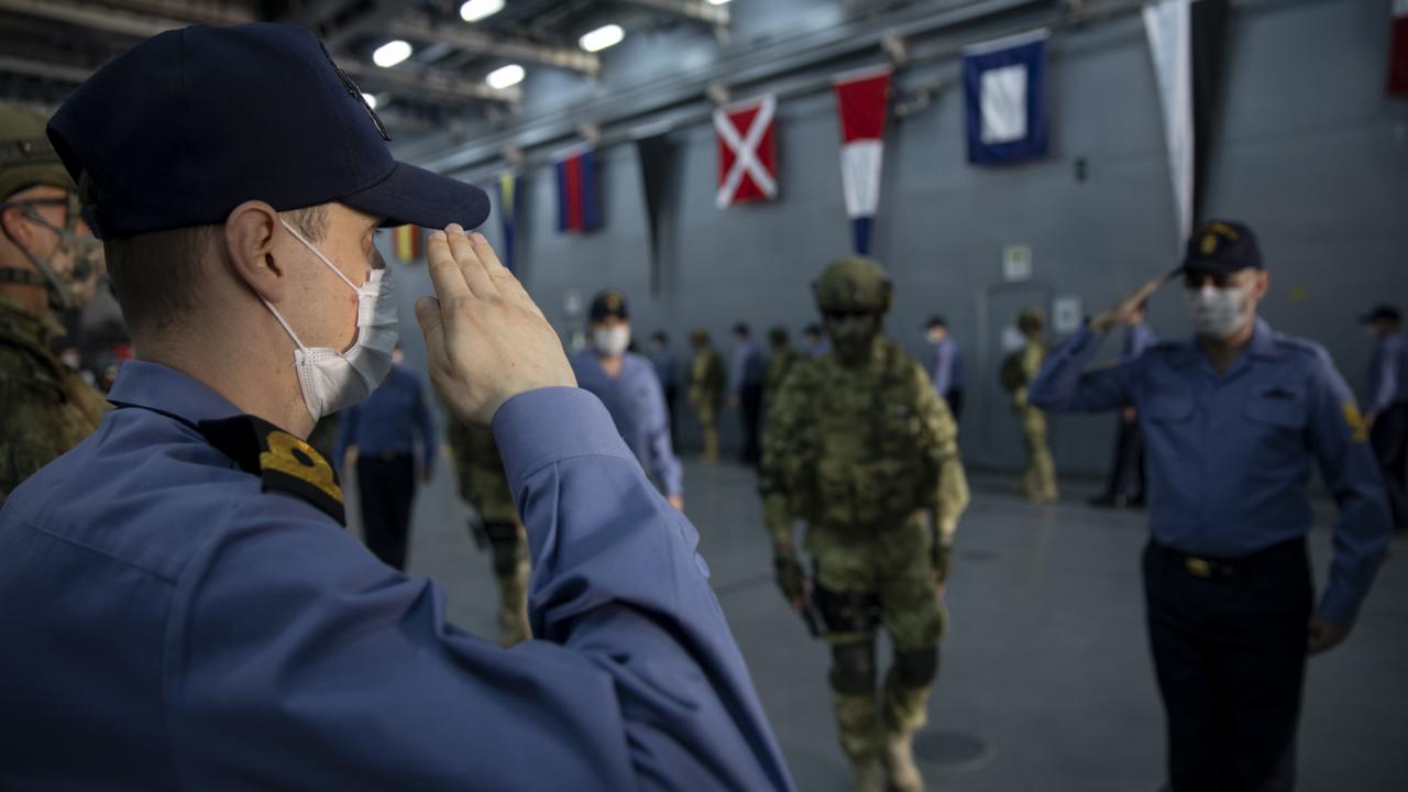 Deniz Kuvvetleri Komutanlığına bağlı yerli ve milli çıkarma gemisi TCG Bayraktar'da görevli personel ile gemideki amfibi deniz piyadeleri Ramazan Bayramı'na vatan nöbeti tutarak giriyor.