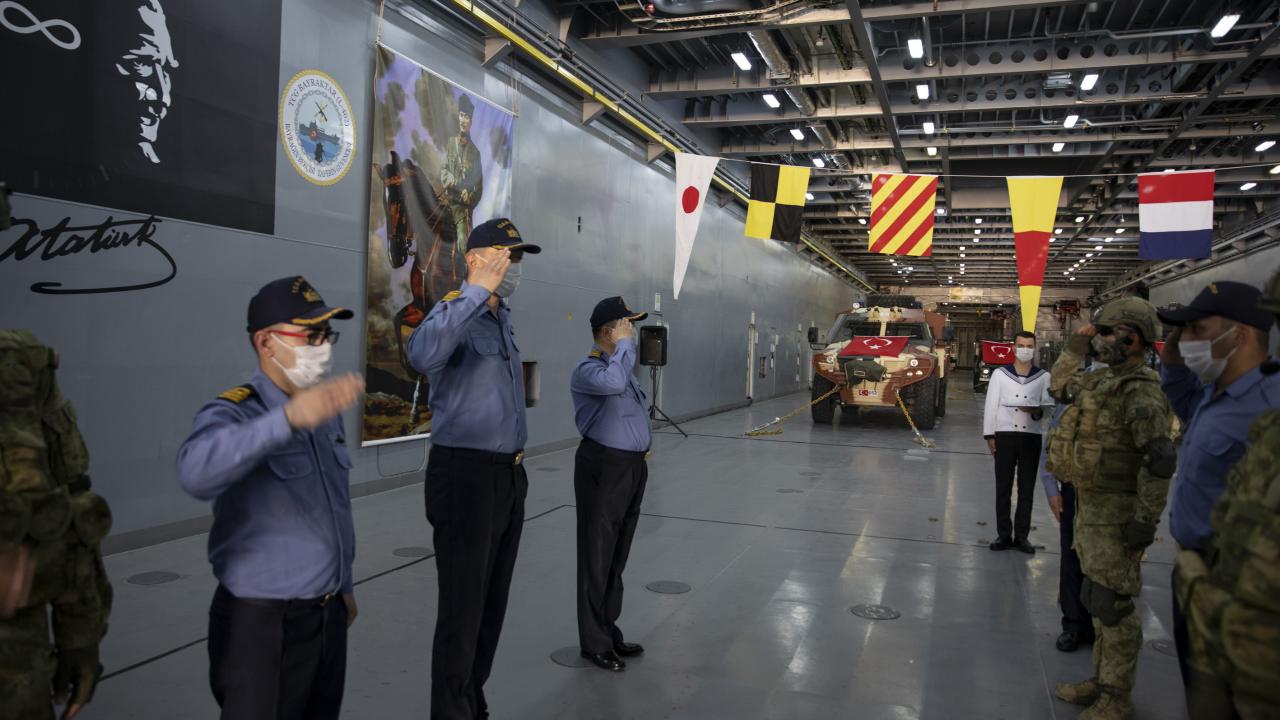 Gemiyle ilgili bilgi veren Silah Subayı Yardımcısı ise Deniz Kuvvetleri Komutanlığının amfibi harekat icra edebilen en büyük tank çıkarma gemisi olan TCG Bayraktar`ın 22 Nisan 2017`de hizmete girdiğini söyledi.
