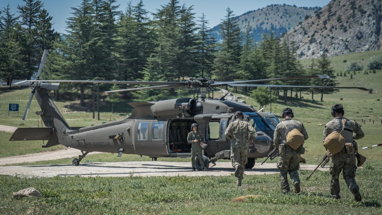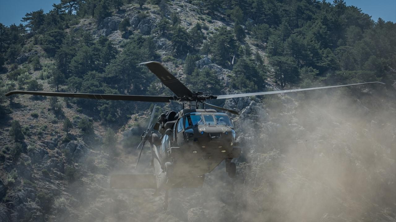 Keskin nişancılar, eğitim faaliyetleri kapsamında hedeflere belirlenen süre içerisinde helikopterden başarılı atışlar yaptı. Sabit olmayan alanda hedefleri tam isabetle vuran keskin nişancılar, görevlerini tamamladıktan sonra yere indi.