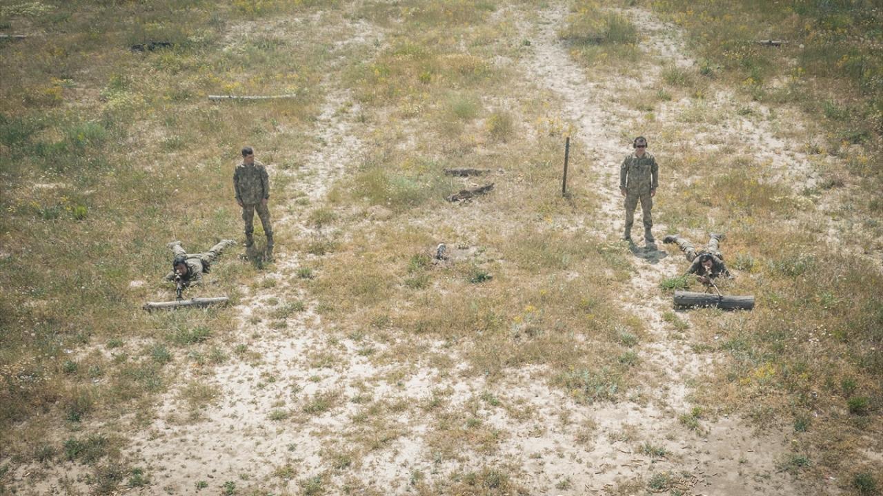 Daha sonra bitki ve araziye uygun olarak "ghillie suit" denen özel kamuflaj kıyafetleri giyerek kamufle olan tim üyeleri, kara hedefine sızarak atış yaptı.